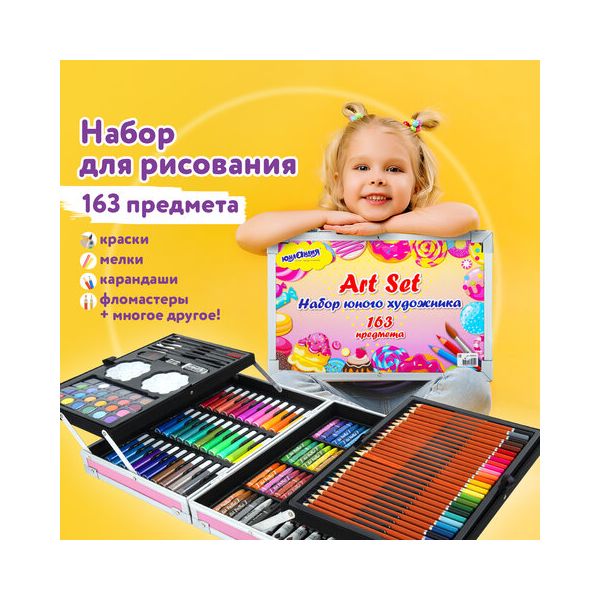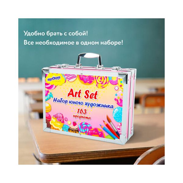 Описание товара 664633, Набор ЮНОГО ХУДОЖНИКА Candy Land для рисования и творчества в кейсе ЮНЛАНДИЯ, 163 предмета, 664633