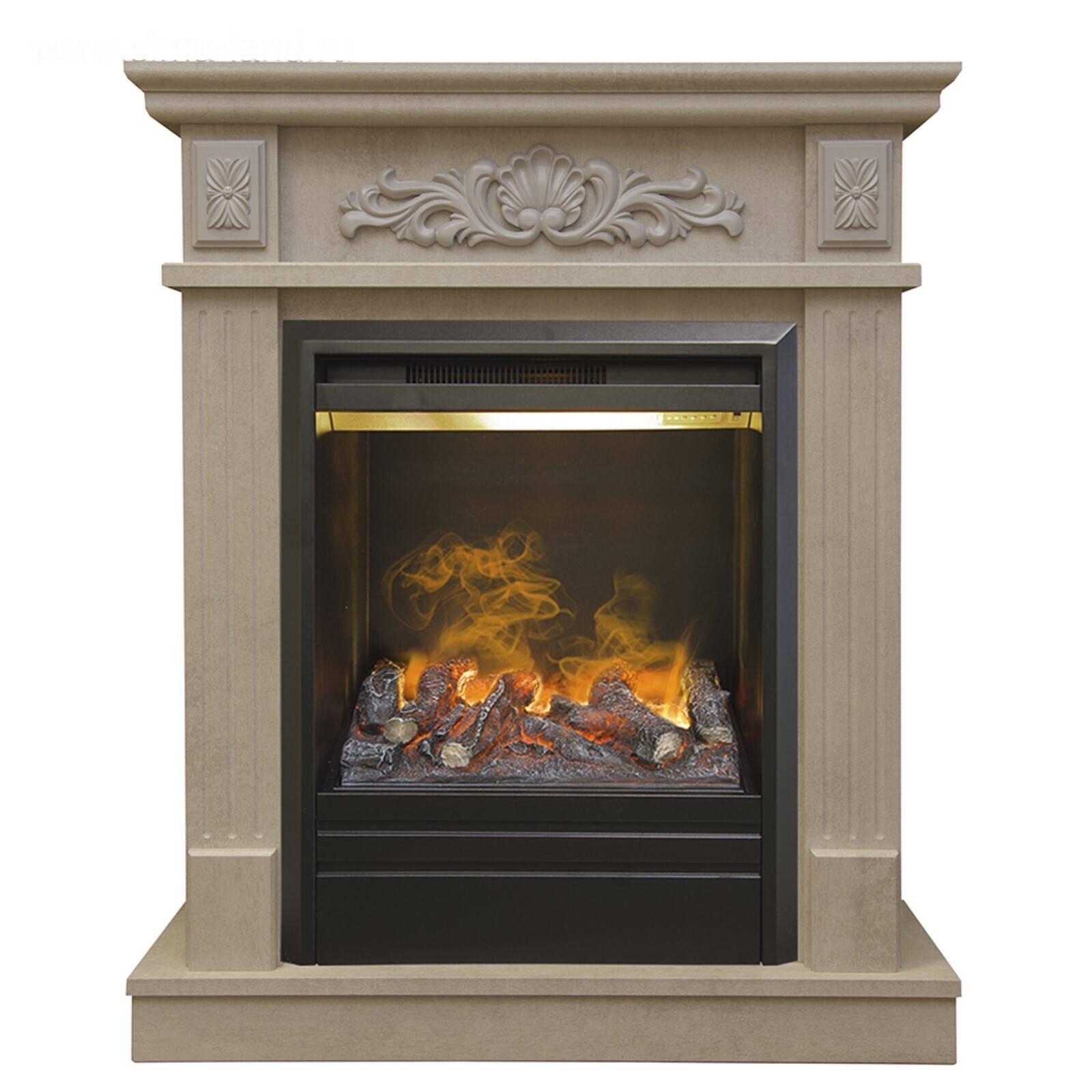 Электрокамин Adelaida STD/EUG WT с электроочагом 3D Olympic, 1500 Вт, эффект живого огня