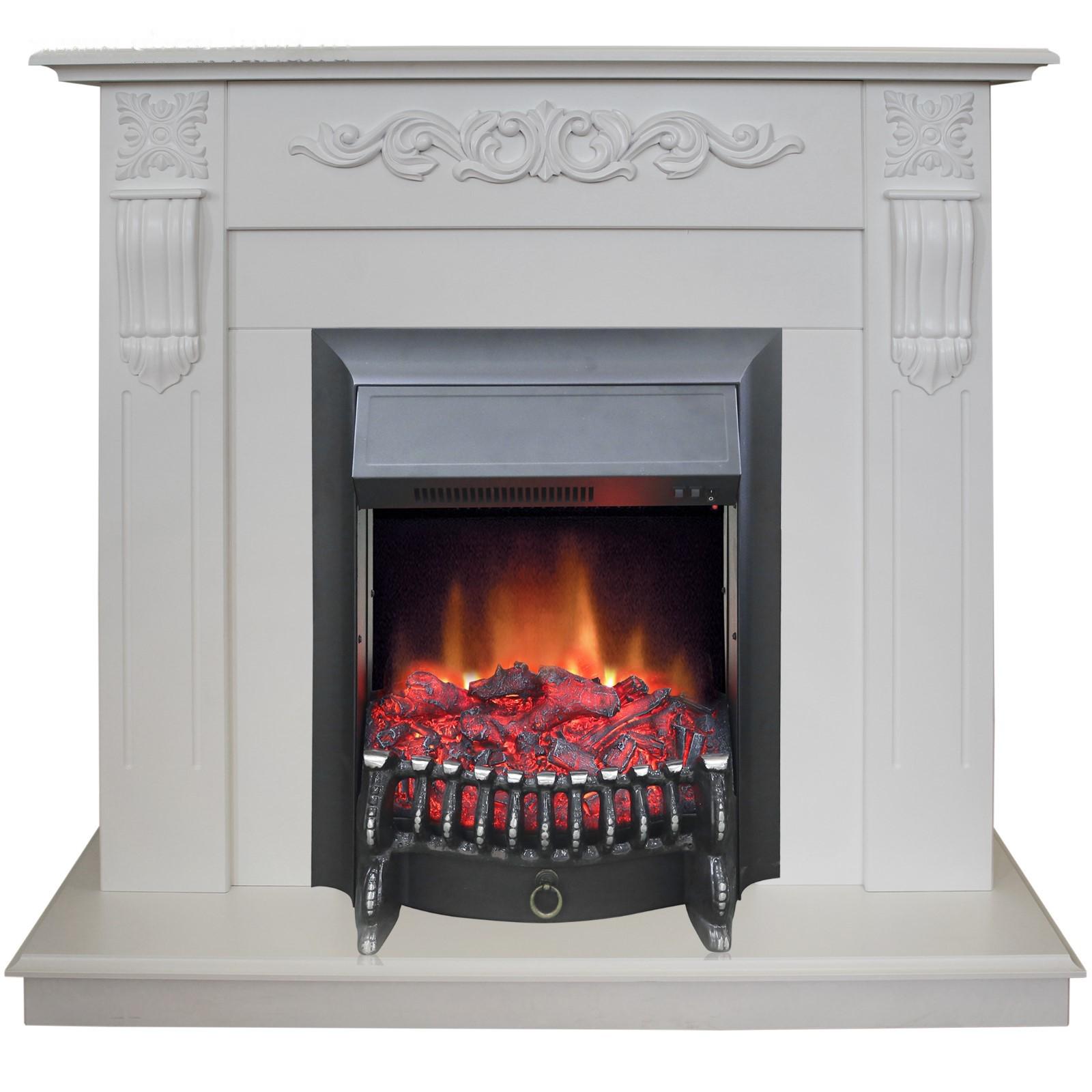Электрокамин Dominica STD/EUG WT с электроочагом Fobos Lux Black, 20", 1500 Вт, белый