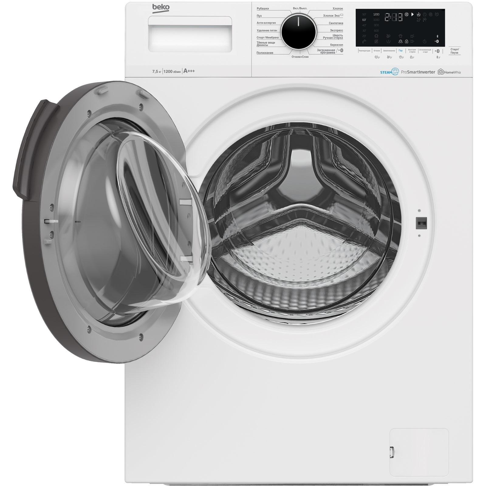 Стиральная машина Beko WSPE7H616W, класс А-20%, 1200 об/мин, до 7.5 кг, бело-чёрная