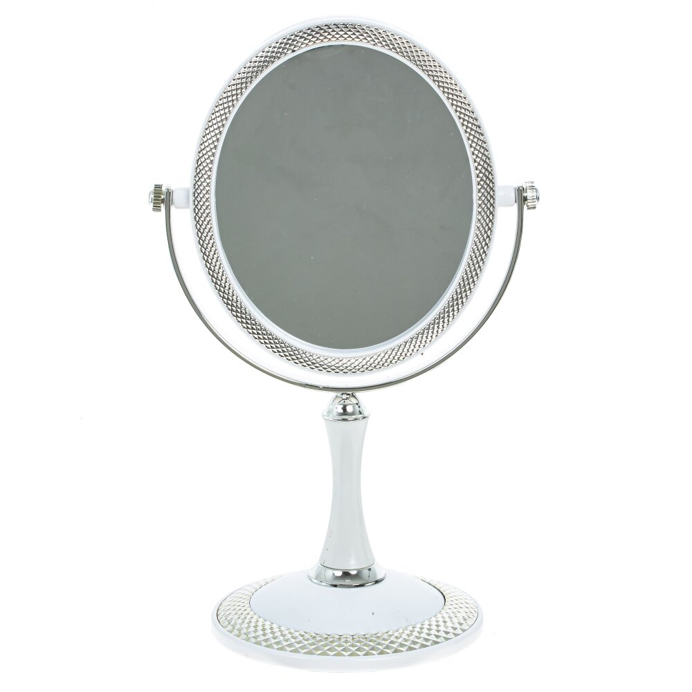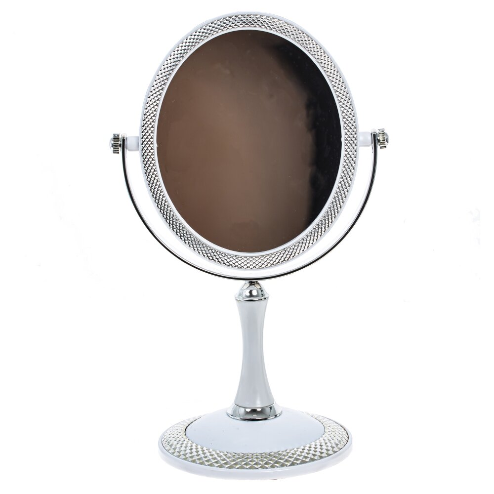 Небольшое настольное двустороннее зеркало (12*15 см) с увеличением – это нужный аксессуар в любом доме. Его часто размещают в ванной, в спальне или в гостиной. Зеркало незаменимо для нанесения макияжа и проведения любых процедур по уходу за кожей лица.