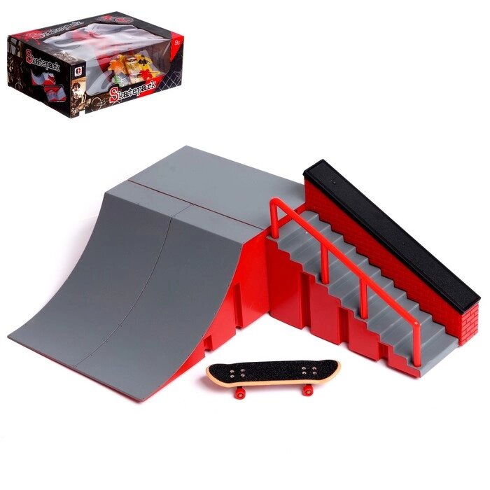 Скейт-парк "Рампа с лестницой", с пальчиковым скейтом, МИКС