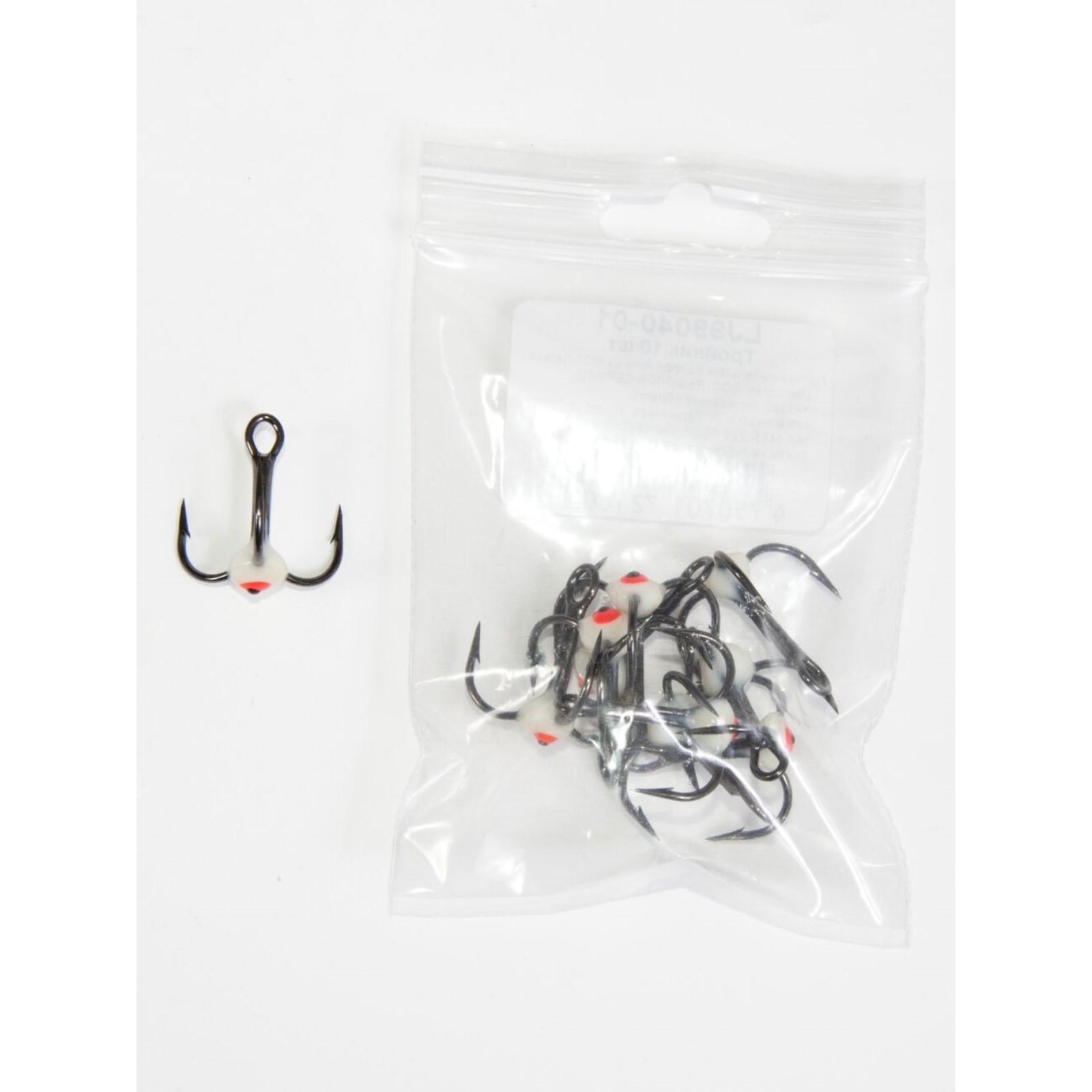 Тройники с пластиковой цветной каплей. Используется для комплектации балансиров и вертикальных блёсен.