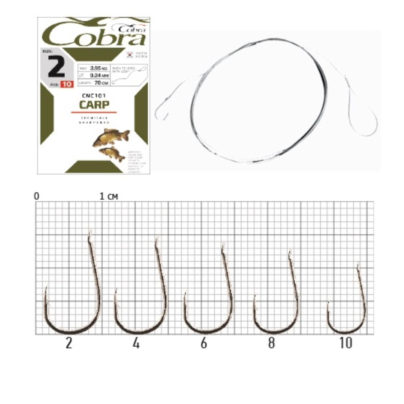 Крючки с поводком Cobra CARP 70cm, 0,24mm, разм.2, 10шт.
