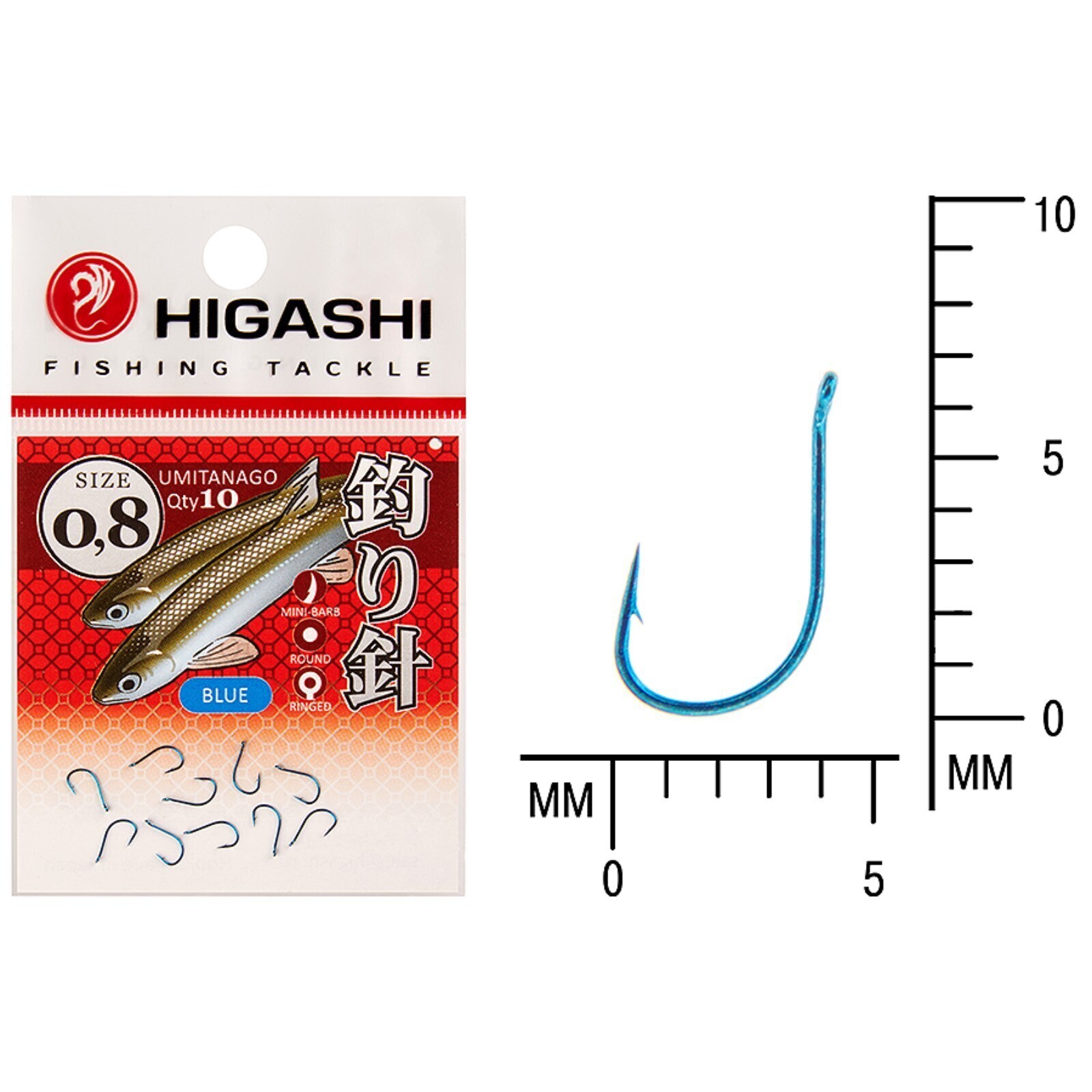 Крючок HIGASHI Umitanago ringed, крючок № 0.8, 10 шт., набор, голубой, 03684