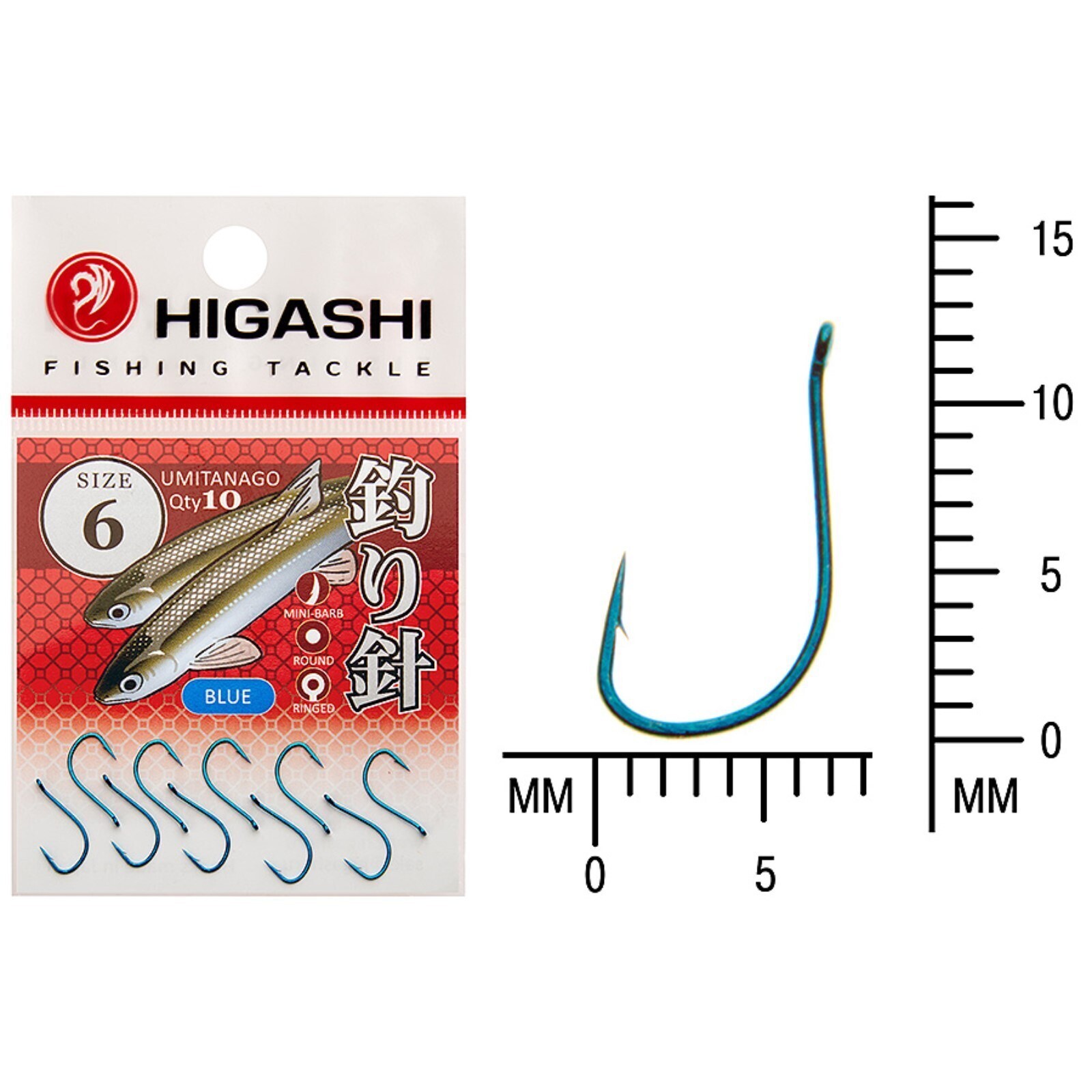 Крючок HIGASHI Umitanago ringed, крючок № 6, 10 шт., набор, голубой, 01353