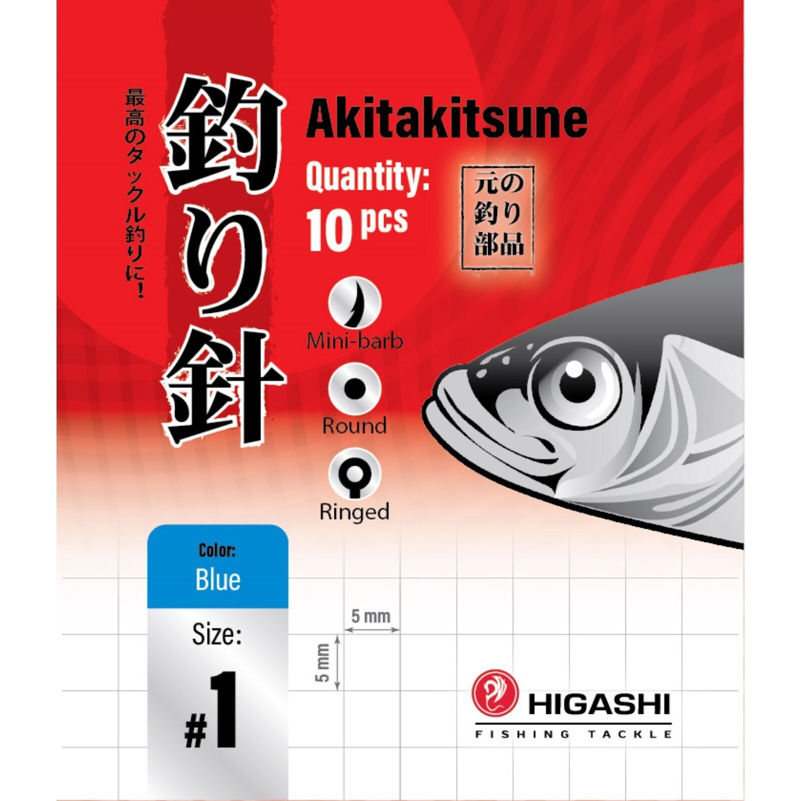 Крючок HIGASHI Akitakitsune ringed, крючок № 1, 10 шт., набор, голубой, 04896