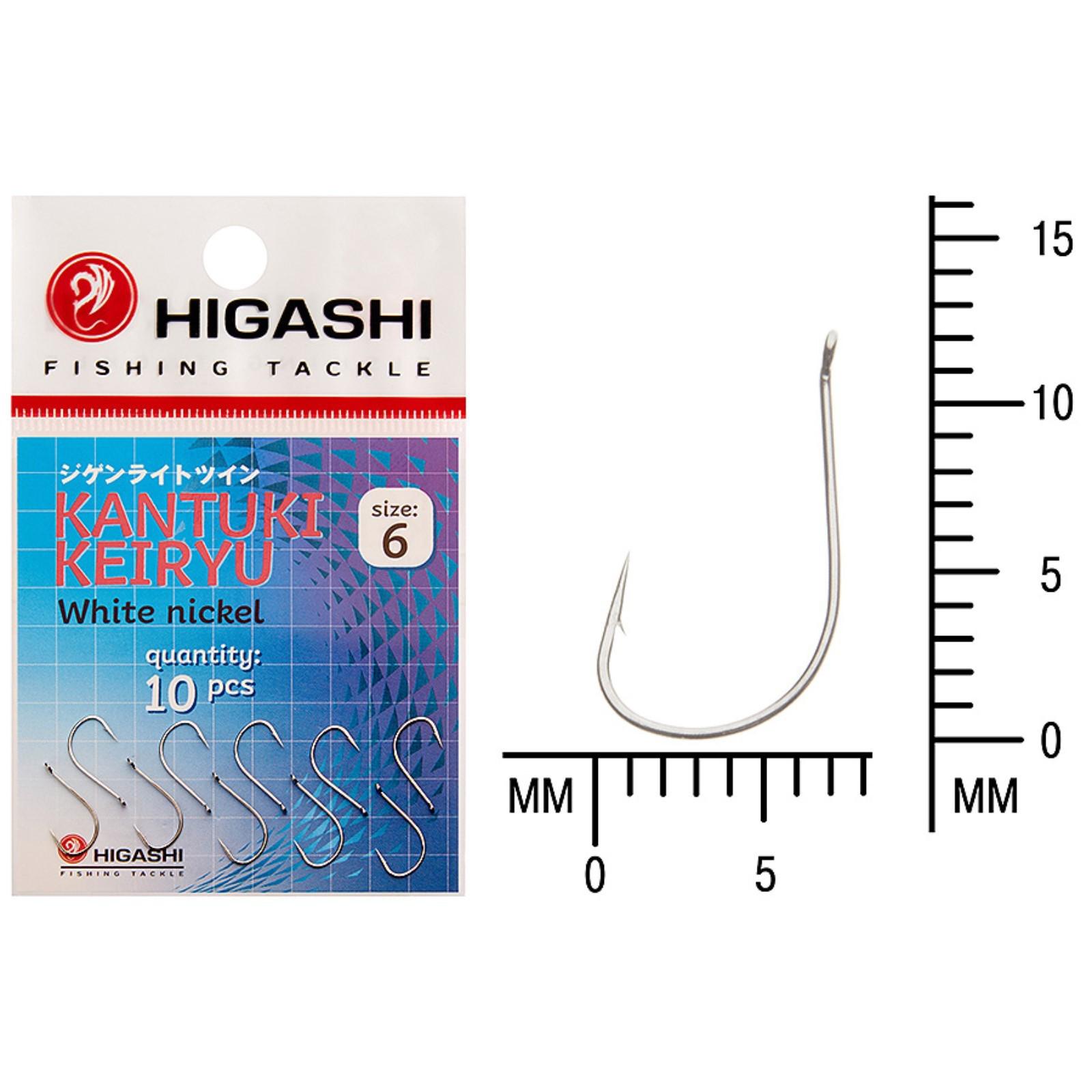 Крючок HIGASHI Kantuki Keiryu, крючок № 6, 10 шт., набор, белый никель, 01358