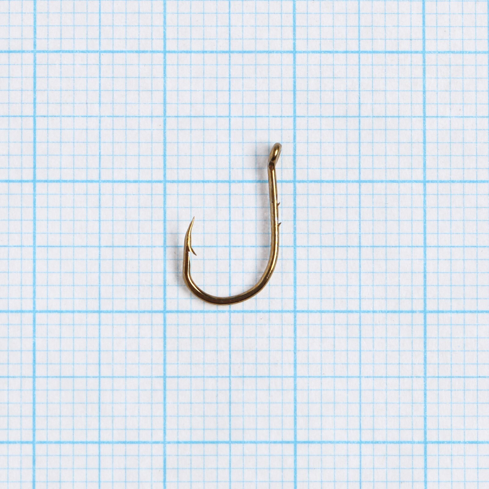 Особенности крючков заключаются в золотистом окрасе, широком поддеве и жалом с изогнутым остриём.