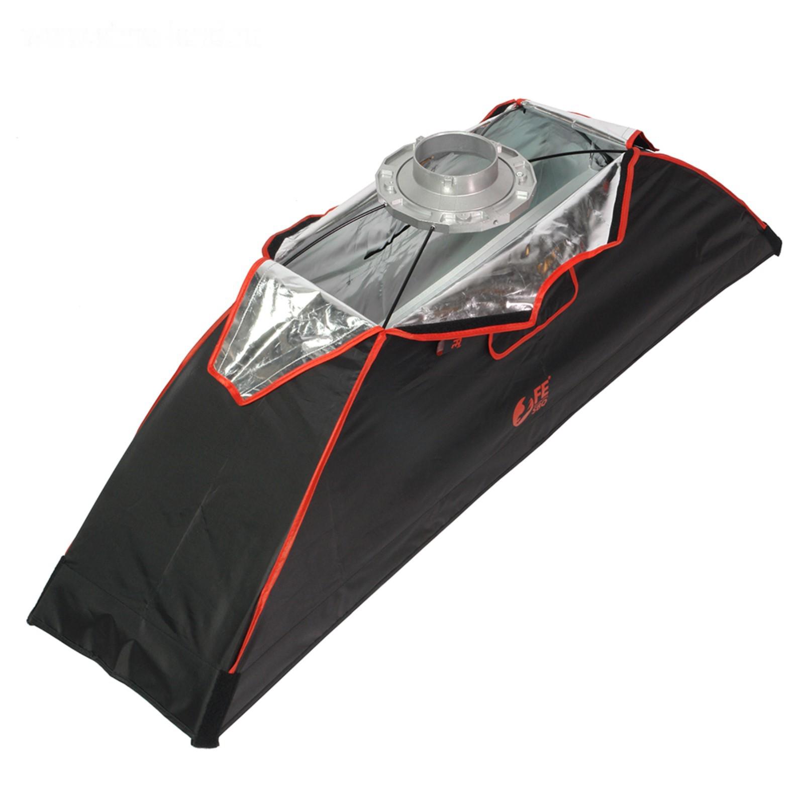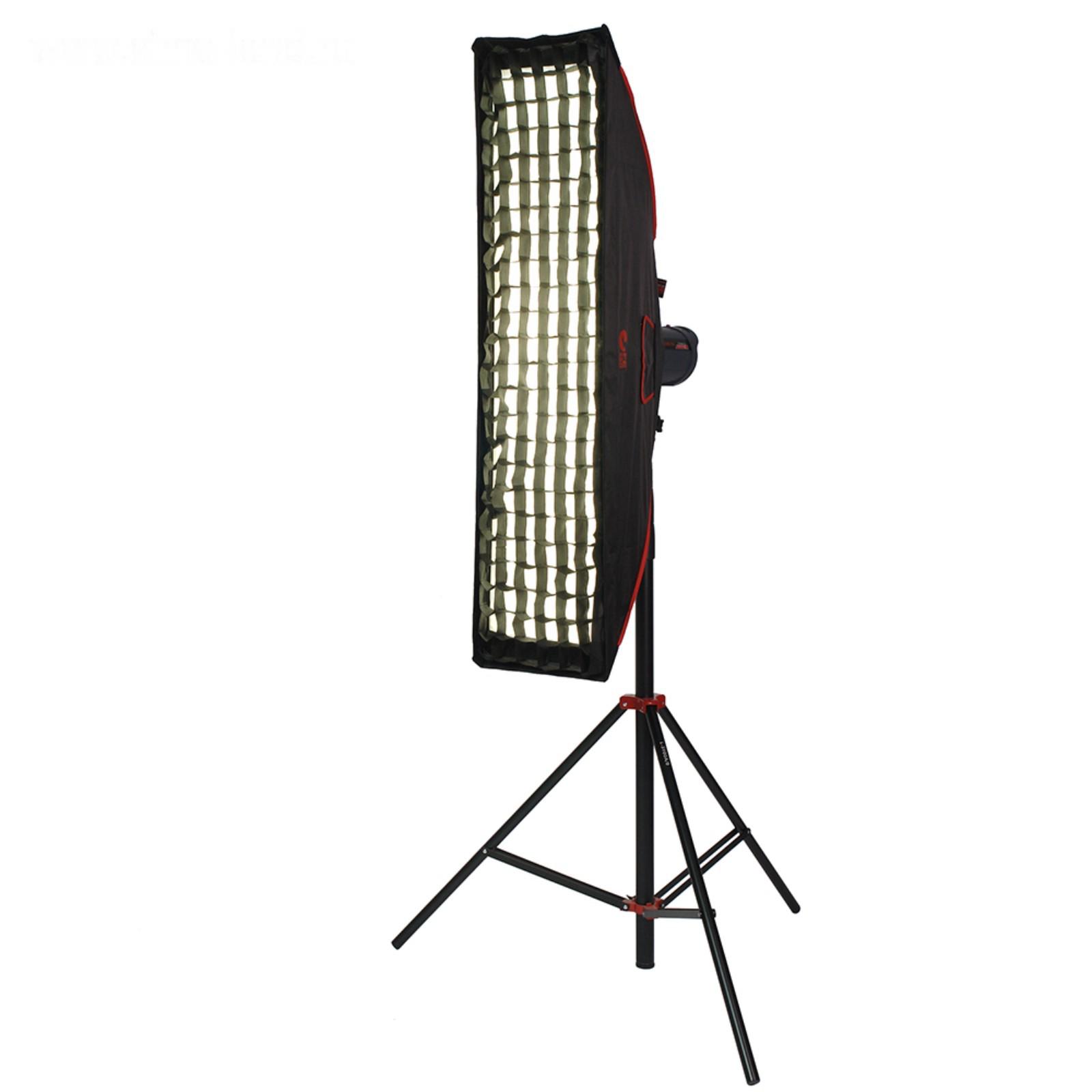 Софтбокс Falcon Eyes SBQ-30120 BW жаропрочный с сотовой насадкой — световой модификатор для студийных осветительных приборов с байонетом Bowens, предназначен для создания мягкого рассеянного освещения без резких теней и бликов. Размер софтбокса 30х120 см. Может использоваться практически с любыми студийными вспышками или галогеновыми осветителями мощностью до 1000 Вт.