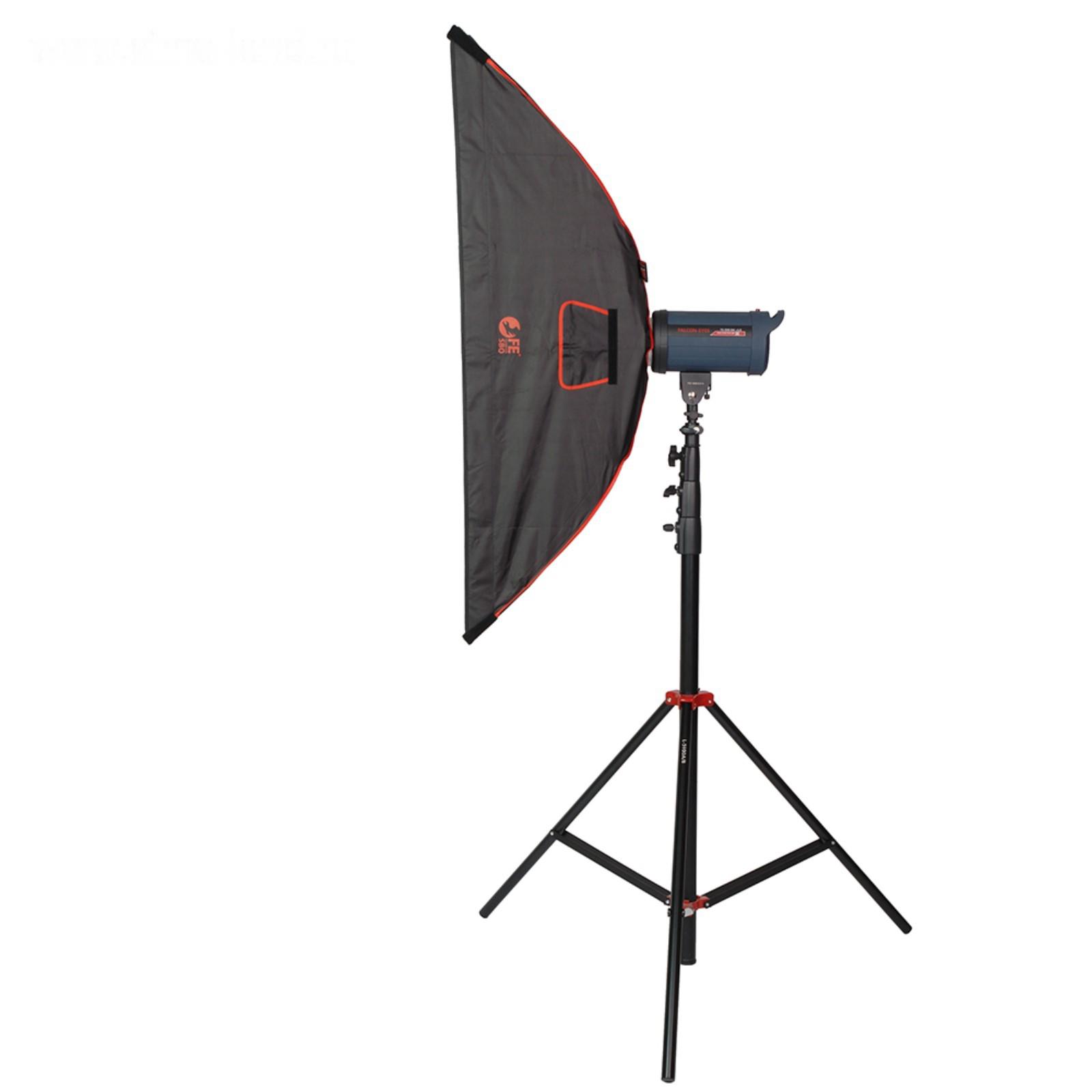 Установленный на приборе софтбокс можно поворачивать на 360 градусов, выбранное положение фиксируется винтом на адаптере. Внешний и внутренний рассеивающие экраны изготовлены из тонких жаропрочных синтетических материалов, крепятся на резинках-растяжках (внутренний) и на липучке (внешний).