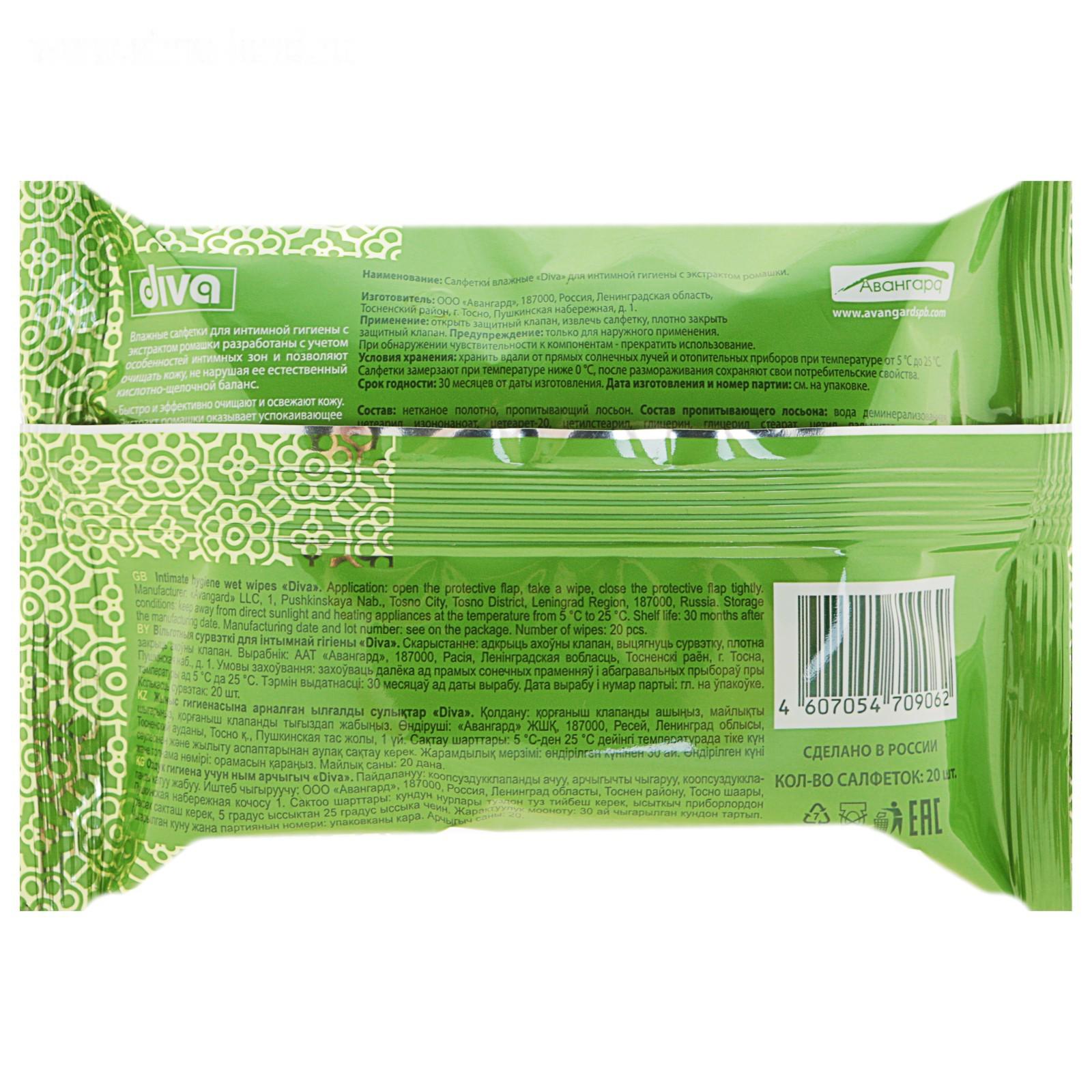 Влажные салфетки Diva intimate Ромашка, для интимной гигиены, 20 шт.