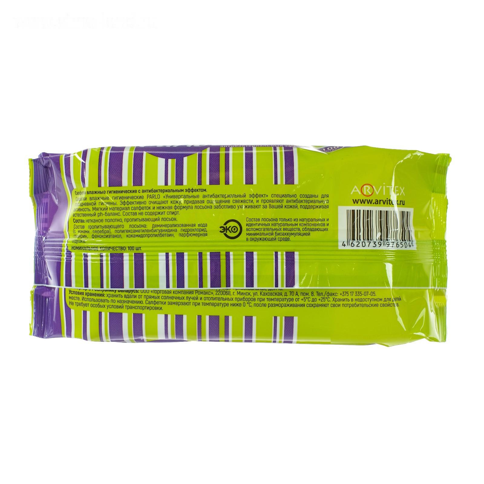 Описание: салфетки влажные гигиенические PARLO «Универсальные антибактериальный эффект» специально созданы для повседневной гигиены. Эффективно очищают кожу, придавая ощущение свежести, и проявляют антибактериальную активность. Мягкий материал салфеток и нежная формула лосьона заботливо ухаживают за Вашей кожей, поддерживая естественный ph-баланс. Состав не содержит спирт.