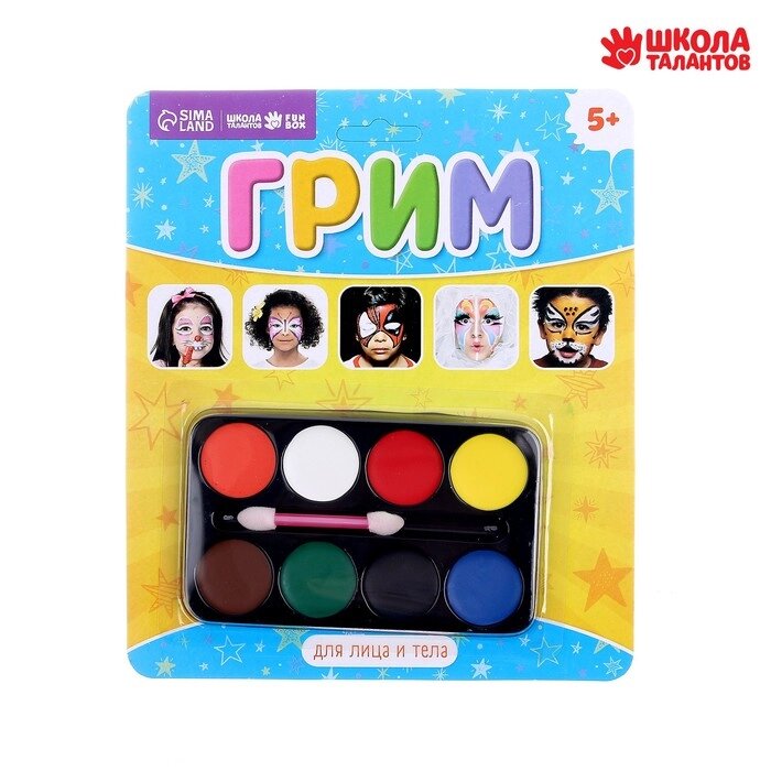 Грим для лица и тела 8 цветов по 3 г, аппликатор