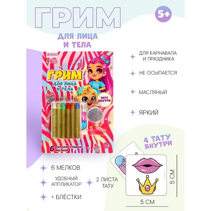 Грим карандаши и блестки с аппликатором и тату "Милая девчонка"