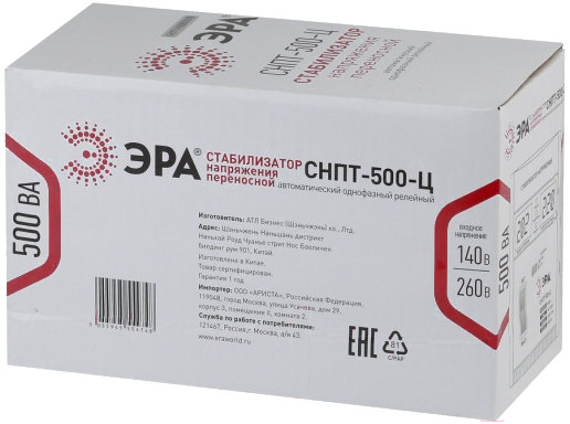 Стабилизатор напряжения ЭРА СНПТ-500-Ц / Б0020157