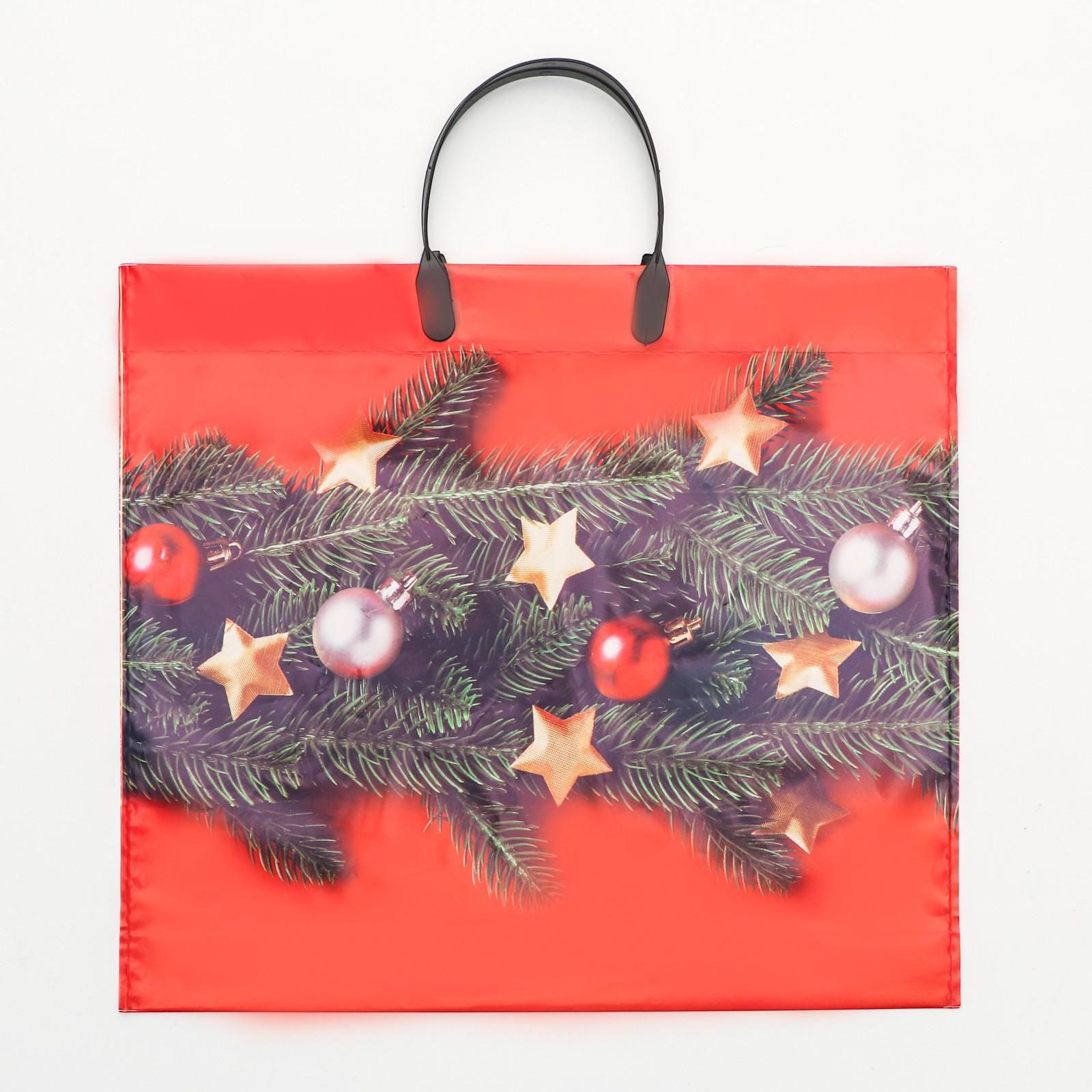 Новогодний подарочный пакет с ярким, красочным рисунком создаст праздничное настроение.