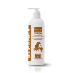 Восстанавливающий шампунь с прополисом и протеинами шелка рекомендован для животных (собак и кошек) с проблемной шерстью и кожей. Активные компоненты шампуня мягко очищают шерстный покров, восстанавливают защитный слой кожи и способствуют ее регенерации. Входящие в состав протеины шелка глубоко увлажняют и питают волос изнутри, восстанавливают его структуру; экстракт прополиса оказывает выраженное антисептическое, питающее и ранозаживляющее действие на кожу животного. При регулярном применении шампуня шерсть животного приобретает здоровый вид, становится мягкой и шелковистой, протеины шелка усиливают естественный блеск шерсти, улучшается состояние кожного покрова животного; способствуют исчезновению неприятного запаха и перхоти. Шампунь не содержит SLS и агрессивных веществ. Натуральные компоненты профессиональных шампуней серии Energy of Nature позволяют применять их для животных с чувствительной кожей, склонной к аллергическим реакциям, а также щенкам и котятам. Имеет приятный цветочный аромат.