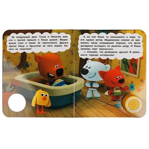 Маленький поклонник мультсериала про весёлых медвежат и их друзей будет с удовольствием готовиться ко сну вместе с любимыми героями. Кроме того, он с интересом поиграет с музыкальной кнопкой и послушает песенки из мультфильма. При этом, освоить включение звука совсем несложно: по нажатию на кнопку начинает проигрываться первая песенка, при втором нажатии звук выключится, при третьем нажатии зазвучит следующая композиция и т.д. Благодаря компактному формату книгу удобно взять с собой в дорогу.