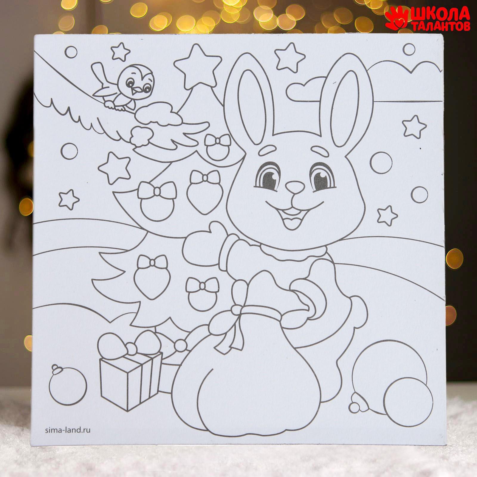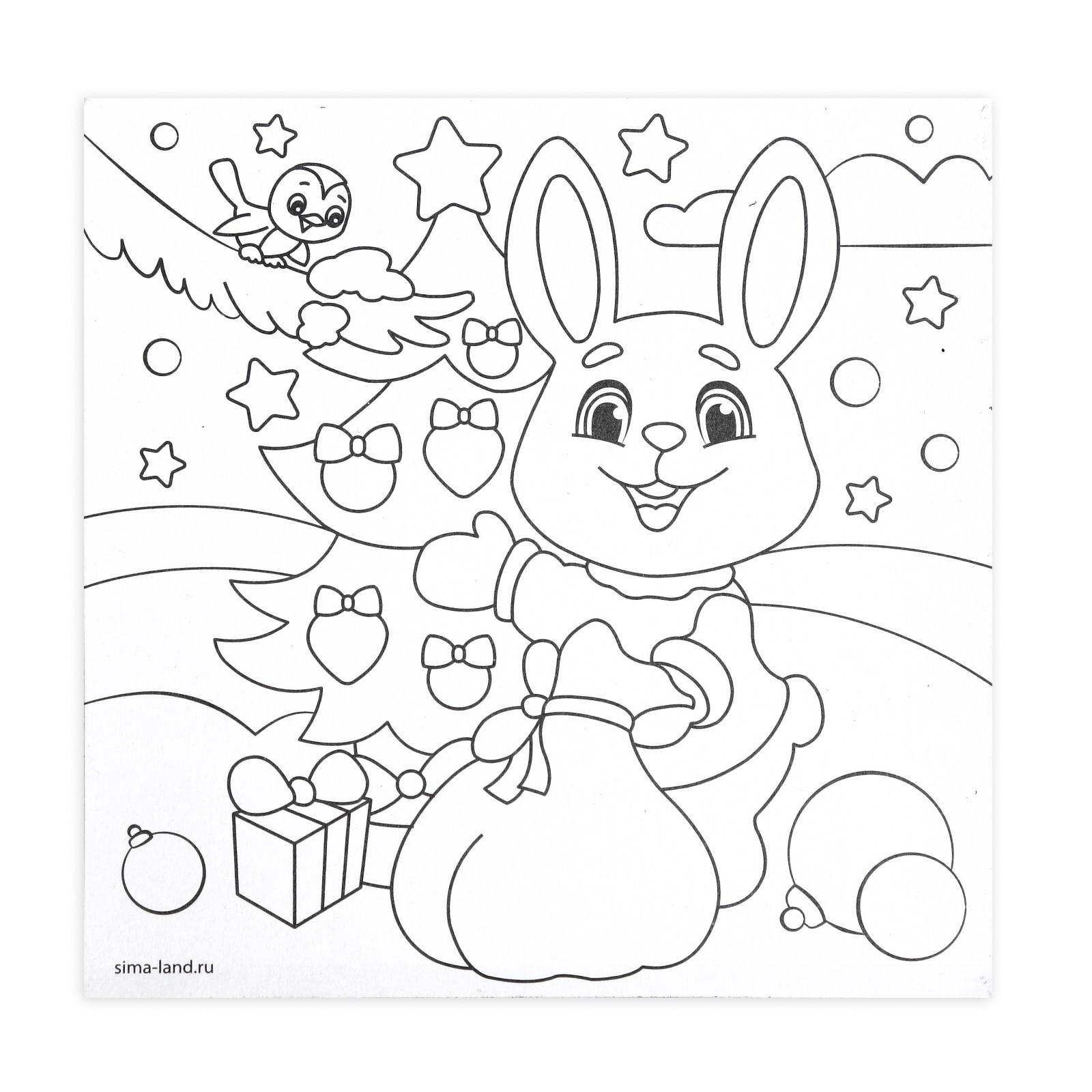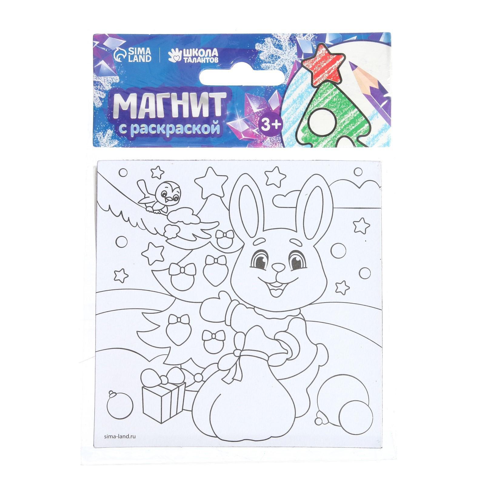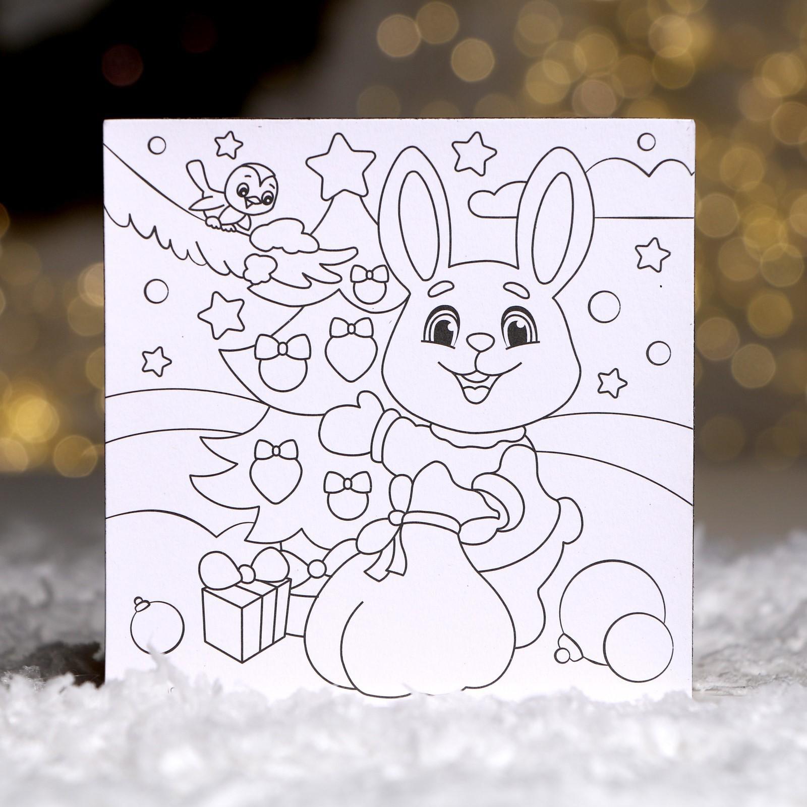Магнит - раскраска «Зайчик у ёлочки», 10х10 см