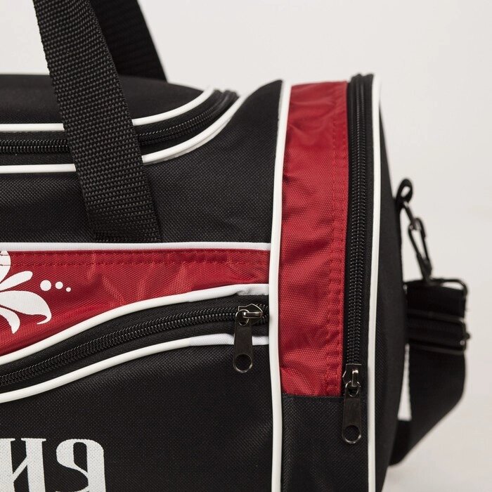 Сумка спортивная, 3 отдела на молниях, наружный карман, длинный ремень, цвет чёрный/красный