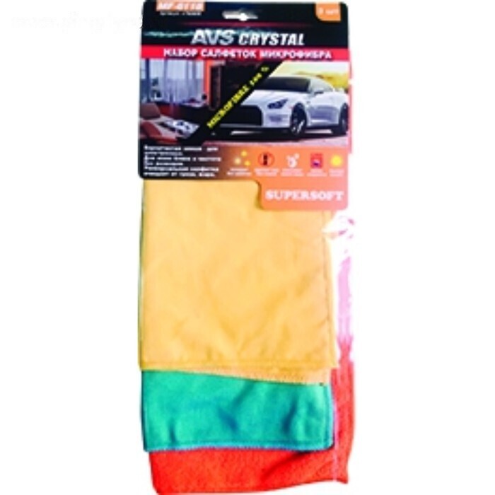Набор салфеток от пыли, для стекол и полировки AVS MF-6118, 30 х 35, 30 х 30, 30 х 25 см, набор 3 шт