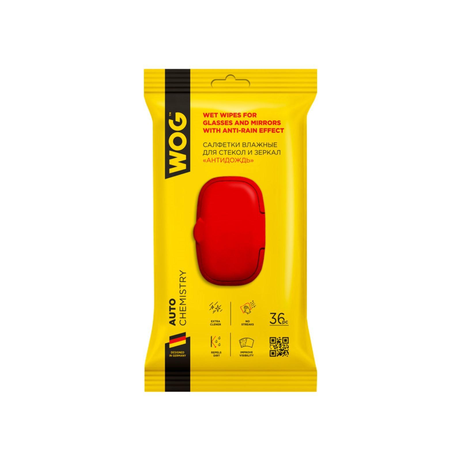 Салфетка влажная WOG для стекол и зеркал, антидождь, 36 шт
