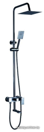 - Комплектация верхний душ, штанга, ручной душ (лейка), держатель лейки, шланг, смеситель, излив для ванны