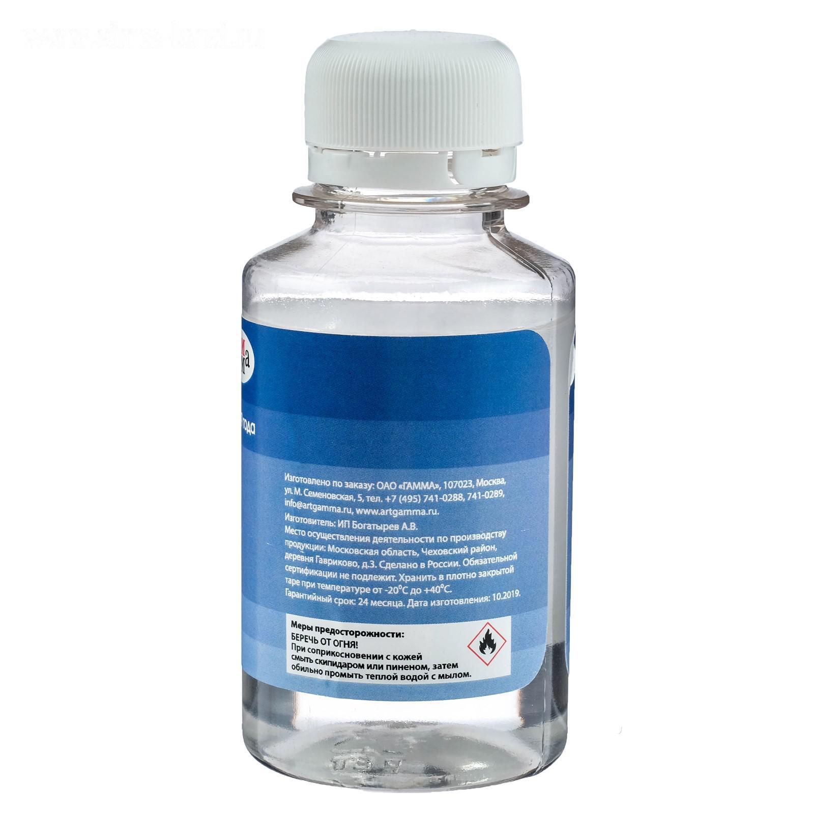 Разбавитель для масляных красок 100 мл, основа: уайт-спирит (БЕЗ ЗАПАХА), «Гамма»