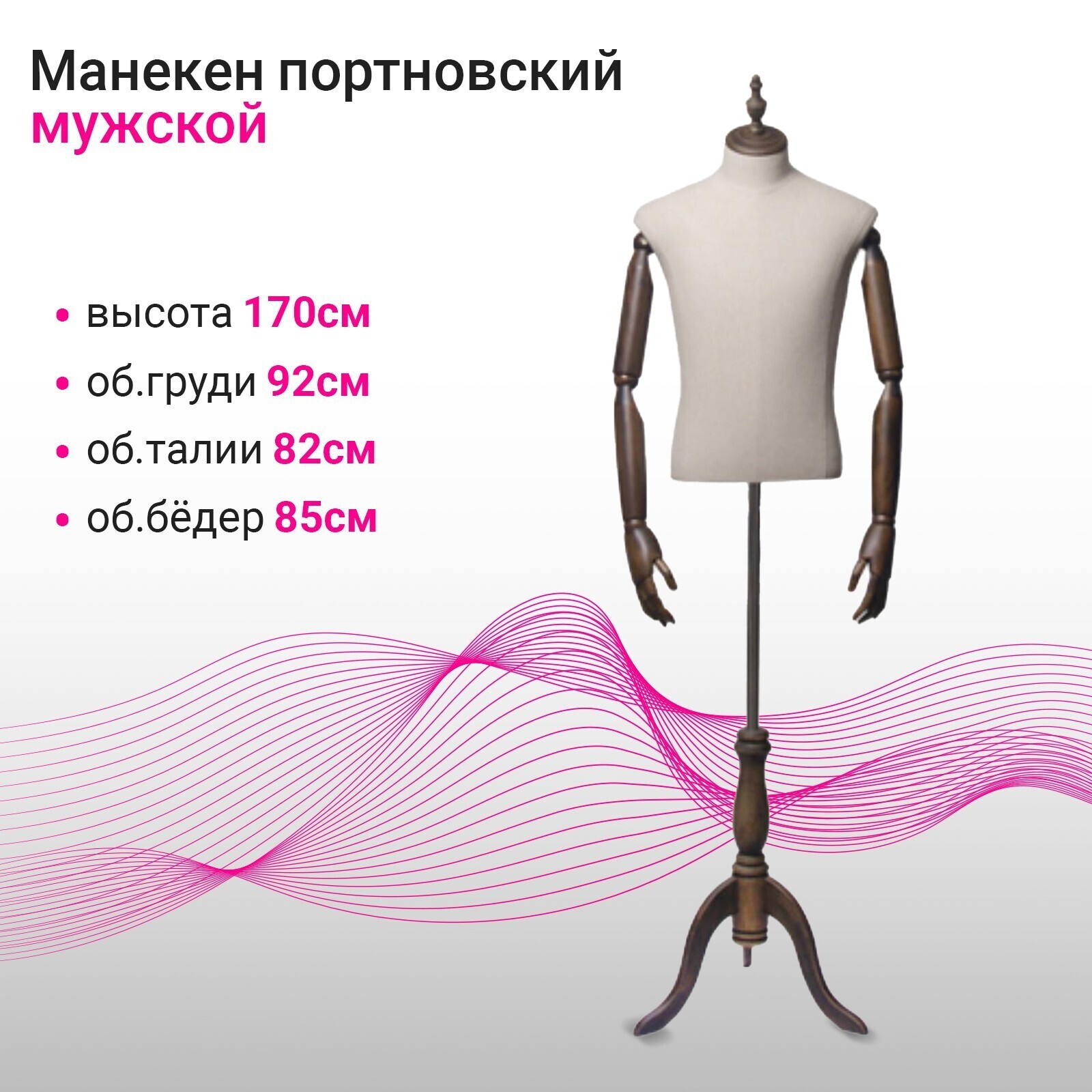 Манекен портновский с деревянными руками, мужской, 92*82, цвет лён