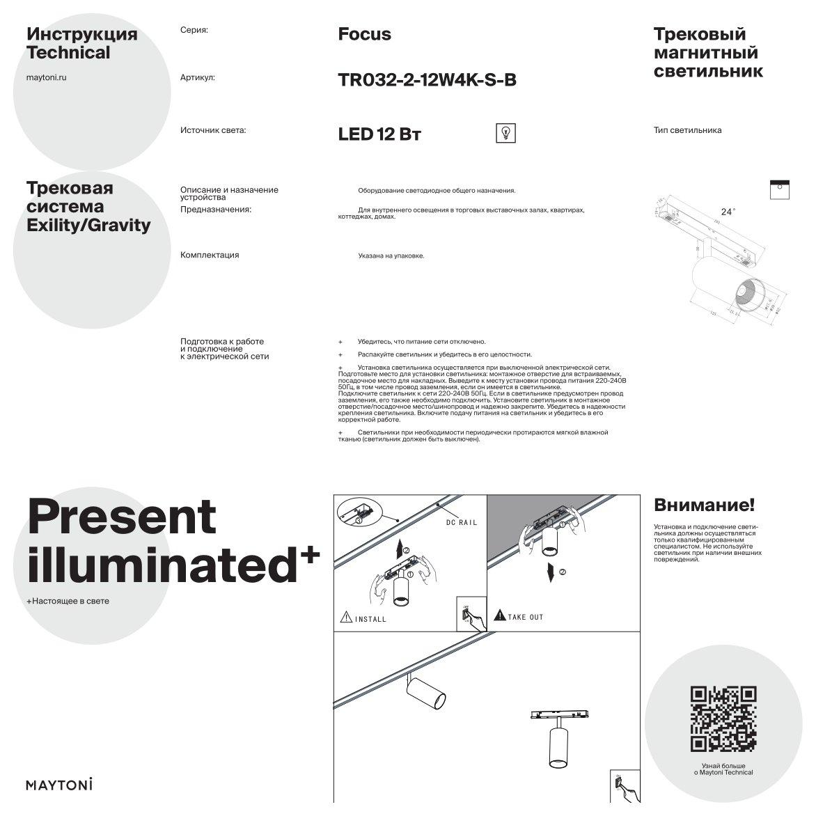Трековый светильник Focus LED Exility TR032-2-12W4K-S-B