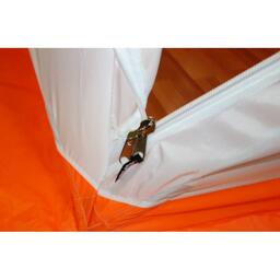 Призма (1-сл) имеет форму куба, что позволяет рыбакам рационально использовать пространство. Сверлить лунки теперь можно прямо в установленной палатке. Габариты ПРИЗМЫ позволяют делать это без каких-либо неудобств. В отличие от классических палаток ПИНГВИН™, палатка ПРИЗМА более ветроустойчива. Благодаря своей конструкции палатка выдерживает порывистый ветер. Легко ставится одним человеком в любую погоду. В палатке ПРИЗМА могут свободно разместиться два человека и комфортно рыбачить как днем, так и ночью! Вход выполнен в угловом варианте и снабжен застежкой – липучкой, а так же специальной зимней молнией. Палатка выполнена в светлых тонах и имеет яркую крышу и пороги, а так же светоотражающие элементы по периметру, что позволяет увидеть палатку в ночное время. На наружной юбке имеются оттяжки для крепления порогов при отсутствии снега. Внутренне пространство тоже стало намного удобнее. Сверху в тенте установлены 2 кармана-сетки для легких вещей, в дополнение к трем сдвоенным карманам по периметру, 2 форточки, выполненных с применением прозрачной морозостойкой ПВХ-пленки (полностью съёмные). Тент выполнен из ткани Оксфорд 240, которая выдерживает столб воды не менее 2000 мл.