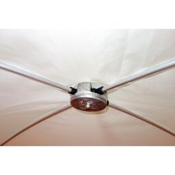 Обратите внимание, что тент не обладает дышащими свойствами. Для циркуляции воздуха внутри палатки рекомендуем использовать форточки или бегунок на входной двери. Также мы рекомендуем укрепить данную палатку растяжками, независимо от наличия ветра.