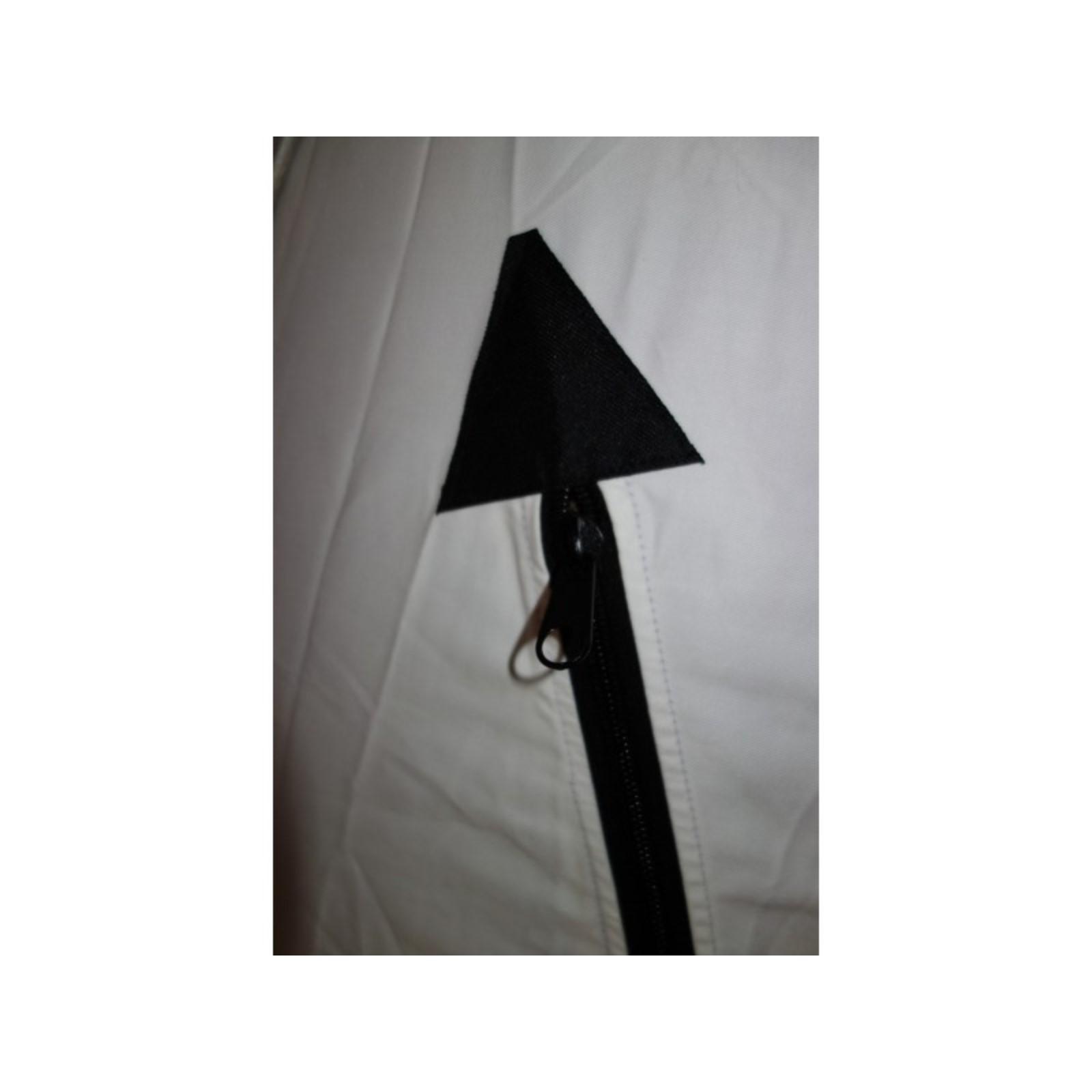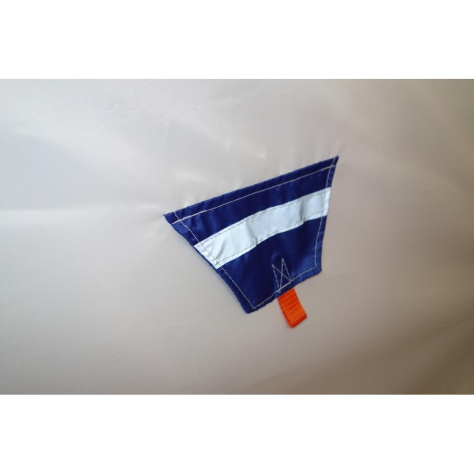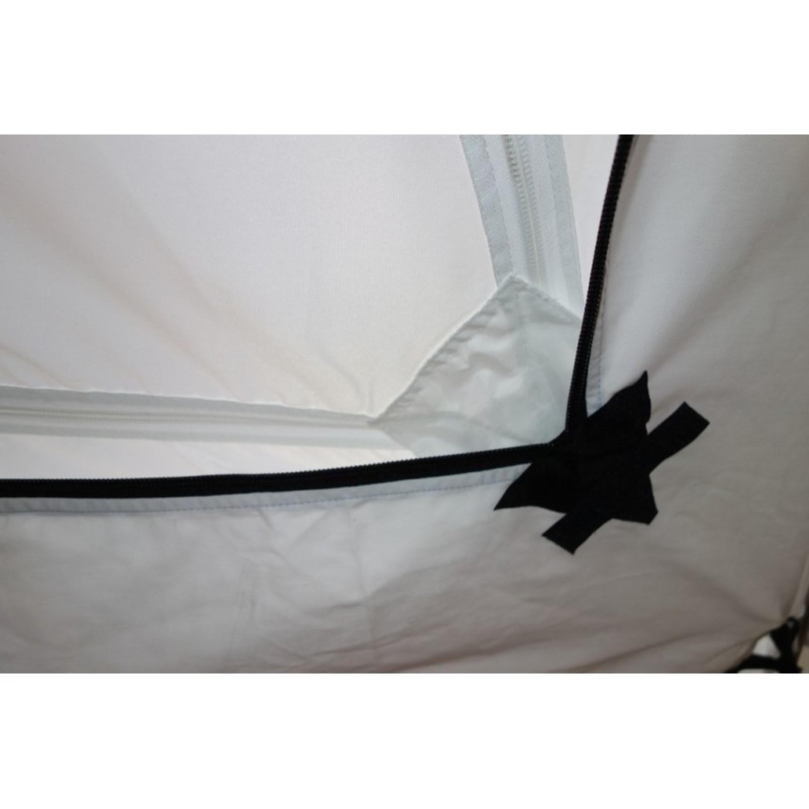 Основной цвет белый с цветной крышей, снаружи имеются светоотражающие элементы, что очень важно для безопасности на льду в темное время суток. Удобный фирменный чехол позволяет свободно уложить после рыбалки даже обмерзшую палатку! Также мы рекомендуем укрепить палатку растяжками, независимо от наличия ветра.
