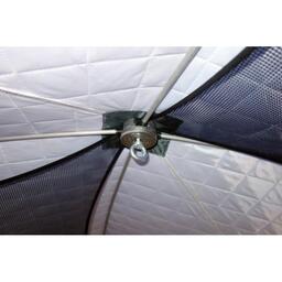 Обратите внимание, что тент не обладает дышащими свойствами. Для циркуляции воздуха внутри палатки рекомендуем использовать форточки или бегунок на входной двери. Также мы рекомендуем укрепить данную палатку растяжками, независимо от наличия ветра.