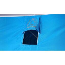 Два технологических клапана на молнии по углам палатки, для подвода газового шланга, приточной вентиляции и т.д. Внутренняя юбка. Четыре полностью съемных окна на липучке из морозоустойчивой ПВХ пленки