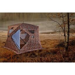 Трапециевидная камуфлированная зимняя палатка. С 2016 года используется новый вид 3D Camo принта. Каждая палатка оснащена четырьмя съемными смотровыми окнами, закрывающимися дополнительными тканевыми клапанами. Вентиляционные отверстия находятся под потолком и снабжены специальными клапанами. Палатка оснащена четырьмя сетчатыми карманами для хранения необходимых рыболовных аксессуаров.