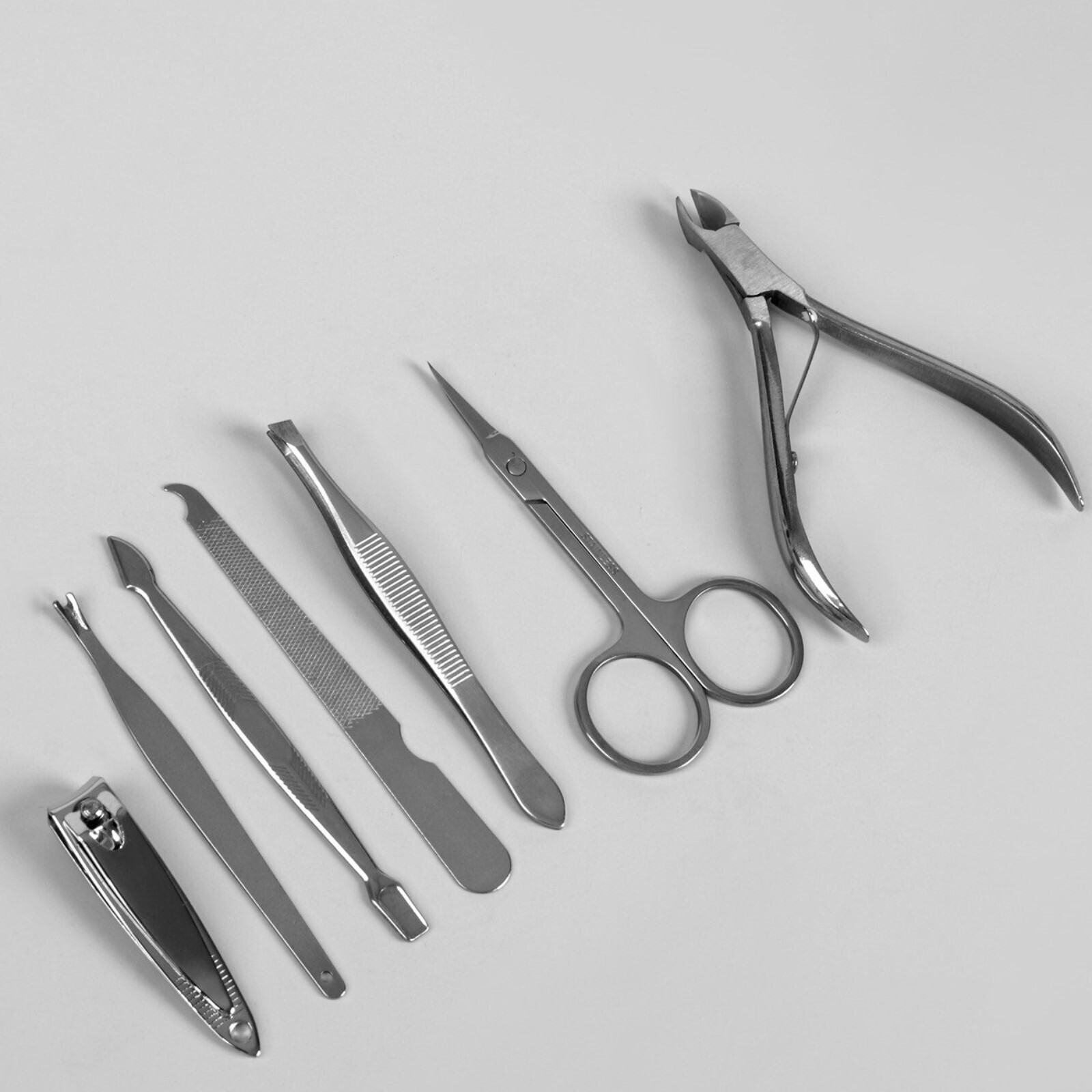 Набор маникюрный, 7 предметов, в футляре, цвет чёрный