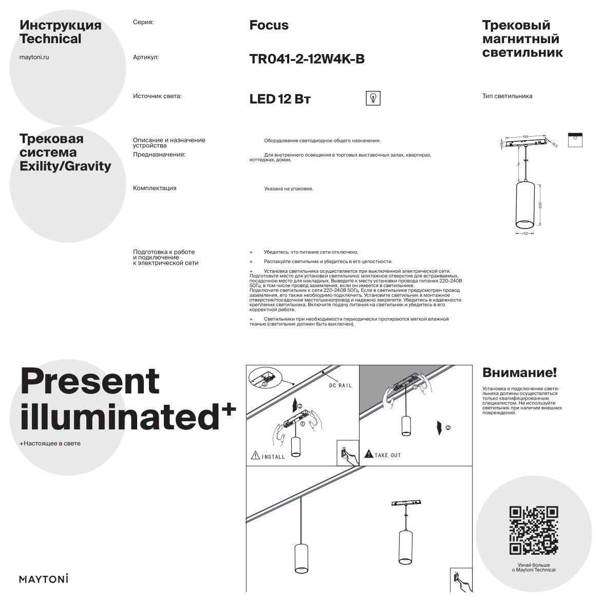Трековый светильник Focus LED Exility TR041-2-12W4K-B