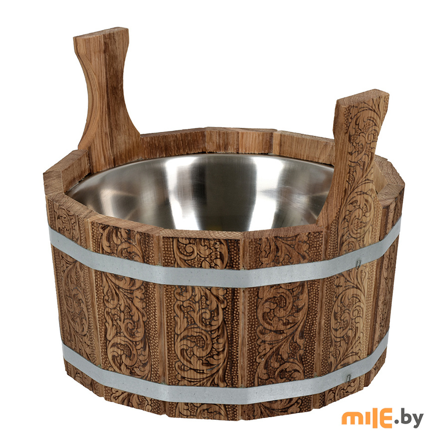 Бондарные изделия из дуба славятся высокой прочностью. Для древесины дуба характерна высокая устойчивость к влаге, что очень важно для изделий, которые используются в банных процедурах. Бондарные изделия с ажурными узорами – это идеальное качество, имитирующее ручную резьбу, а одинаковые симметричные рисунки создают эффект коллекционного раритета.