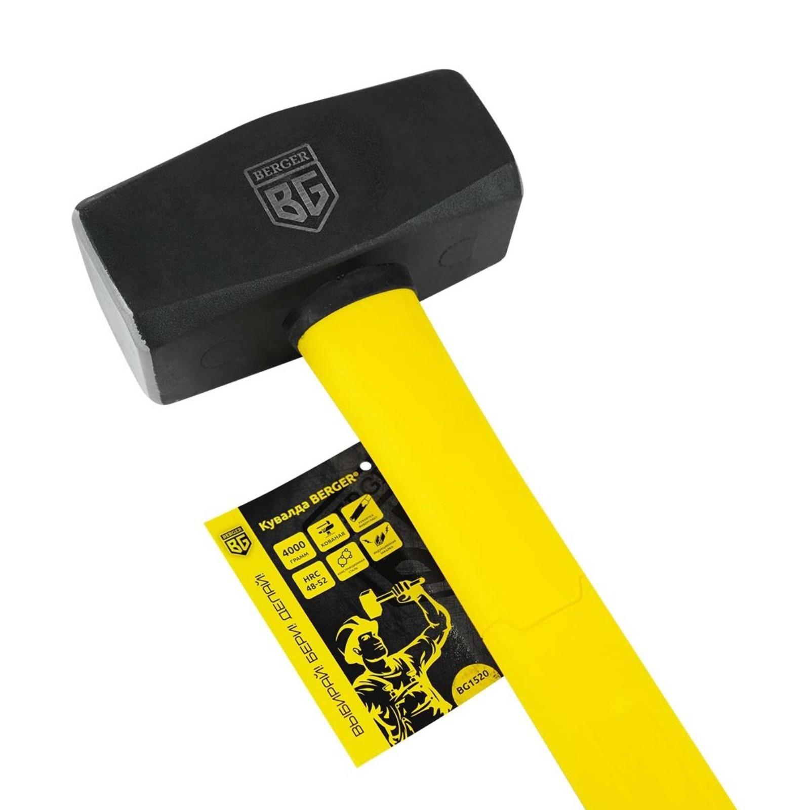 Кувалда кованая BERGER BG1520, двухкомпонентная фиберглассовая рукоятка, 4000 г