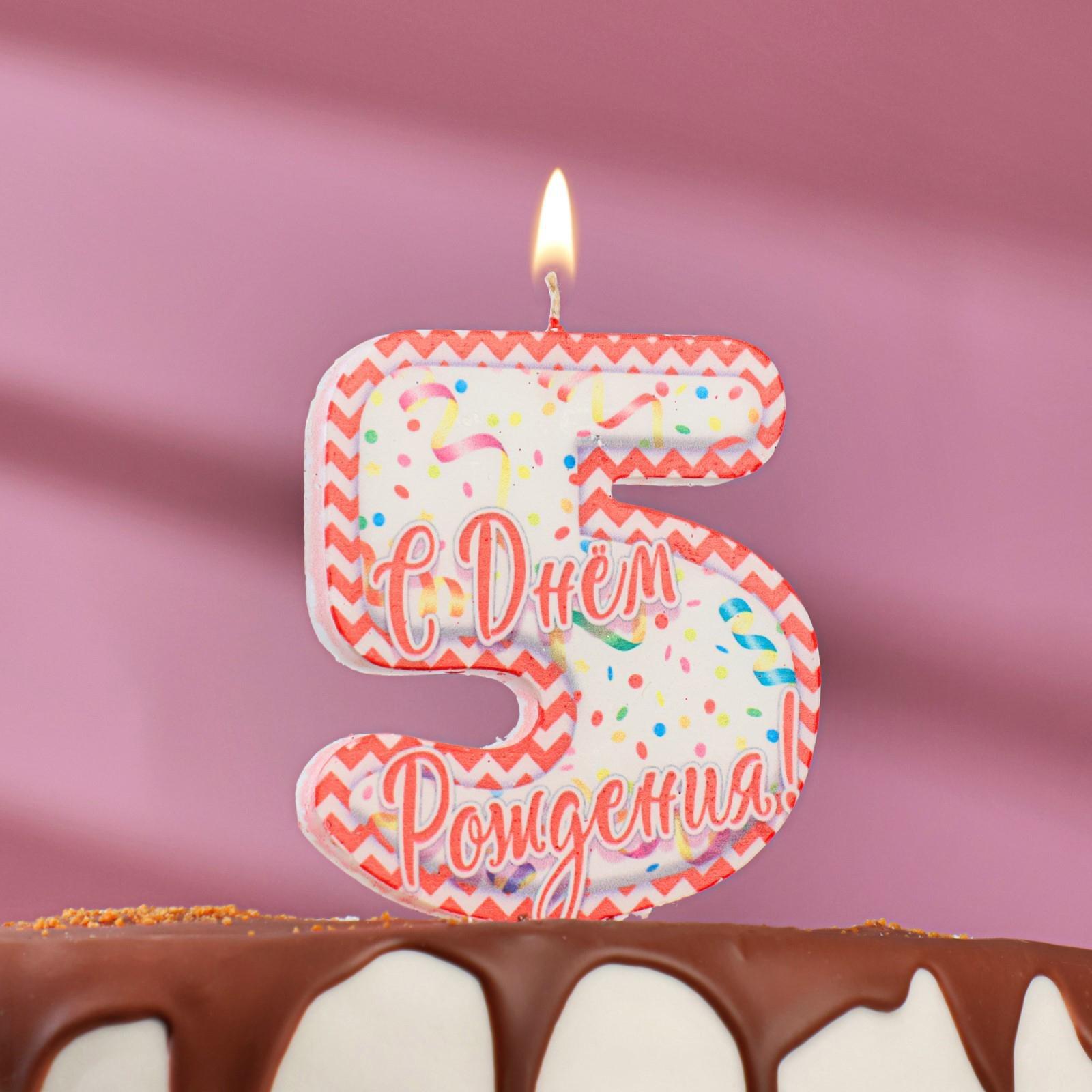 Свеча для торта цифра "5", ГИГАНТ, 10 см