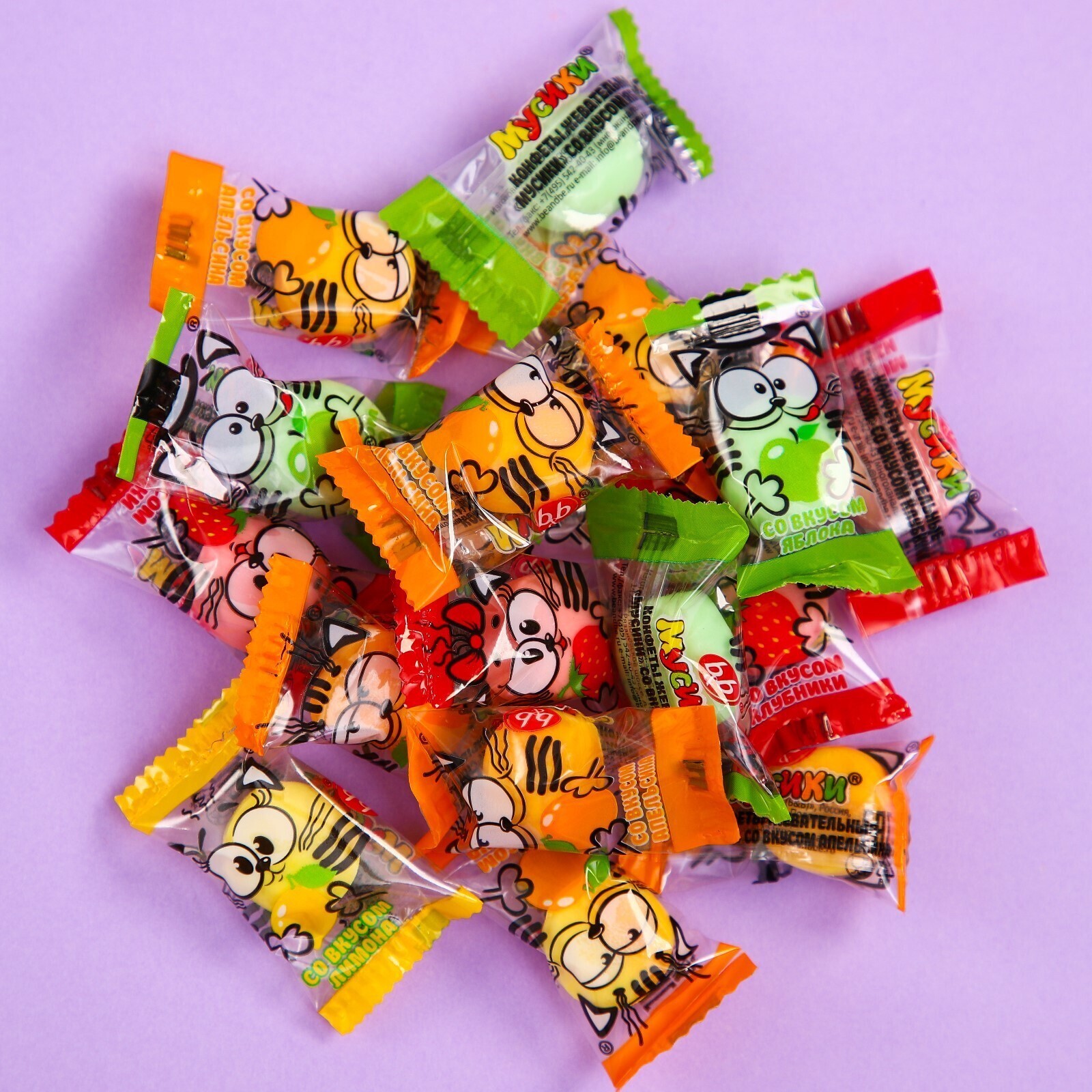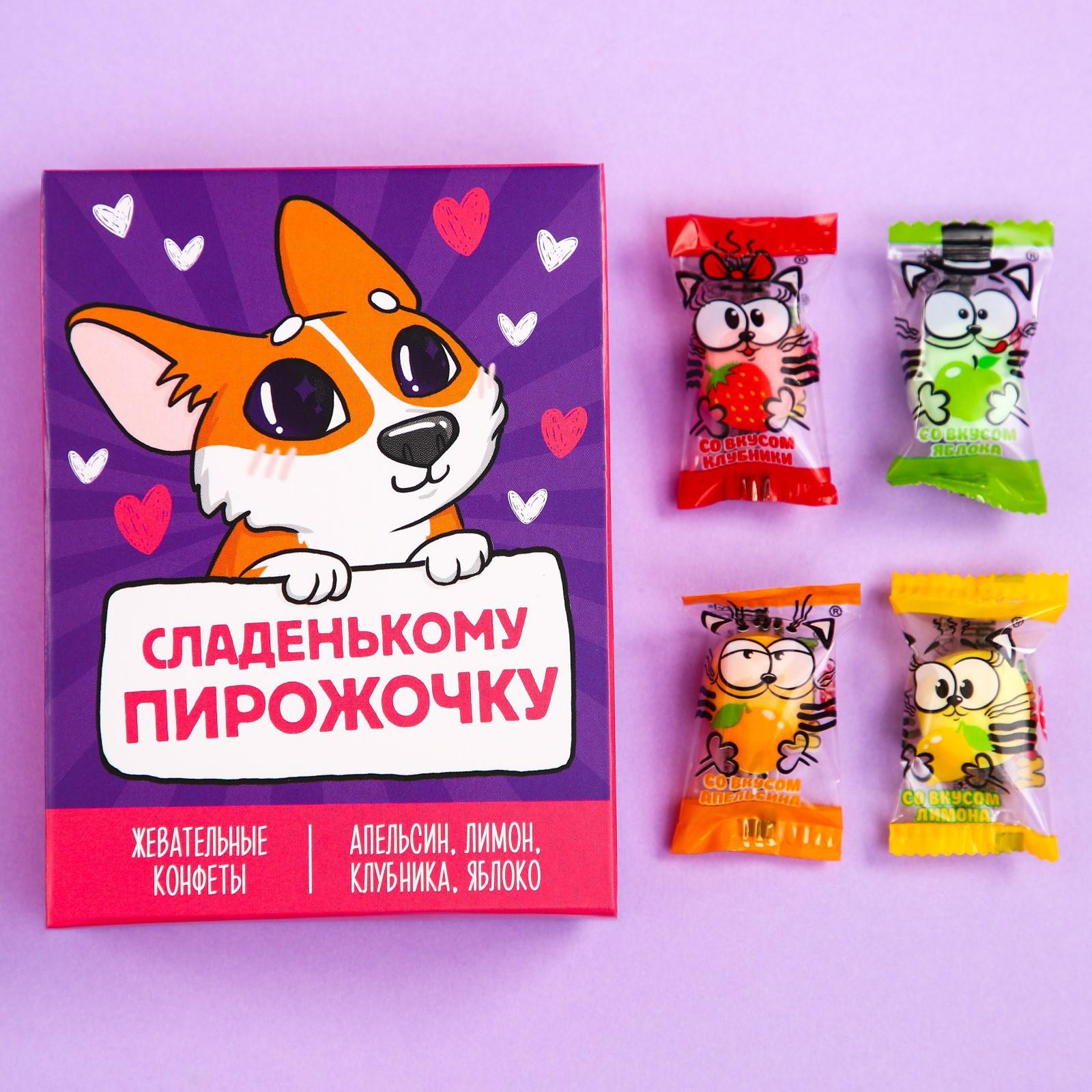 Жевательные конфеты «Сладенькому пирожочку», вкусы: апельсин, лимон, клубника, яблоко, 70 г.
