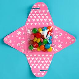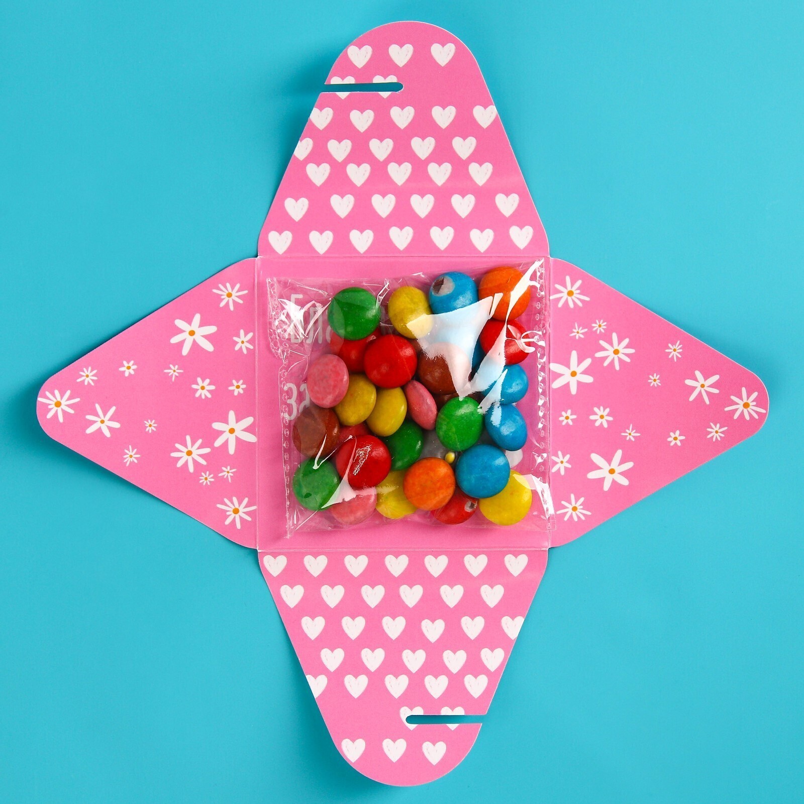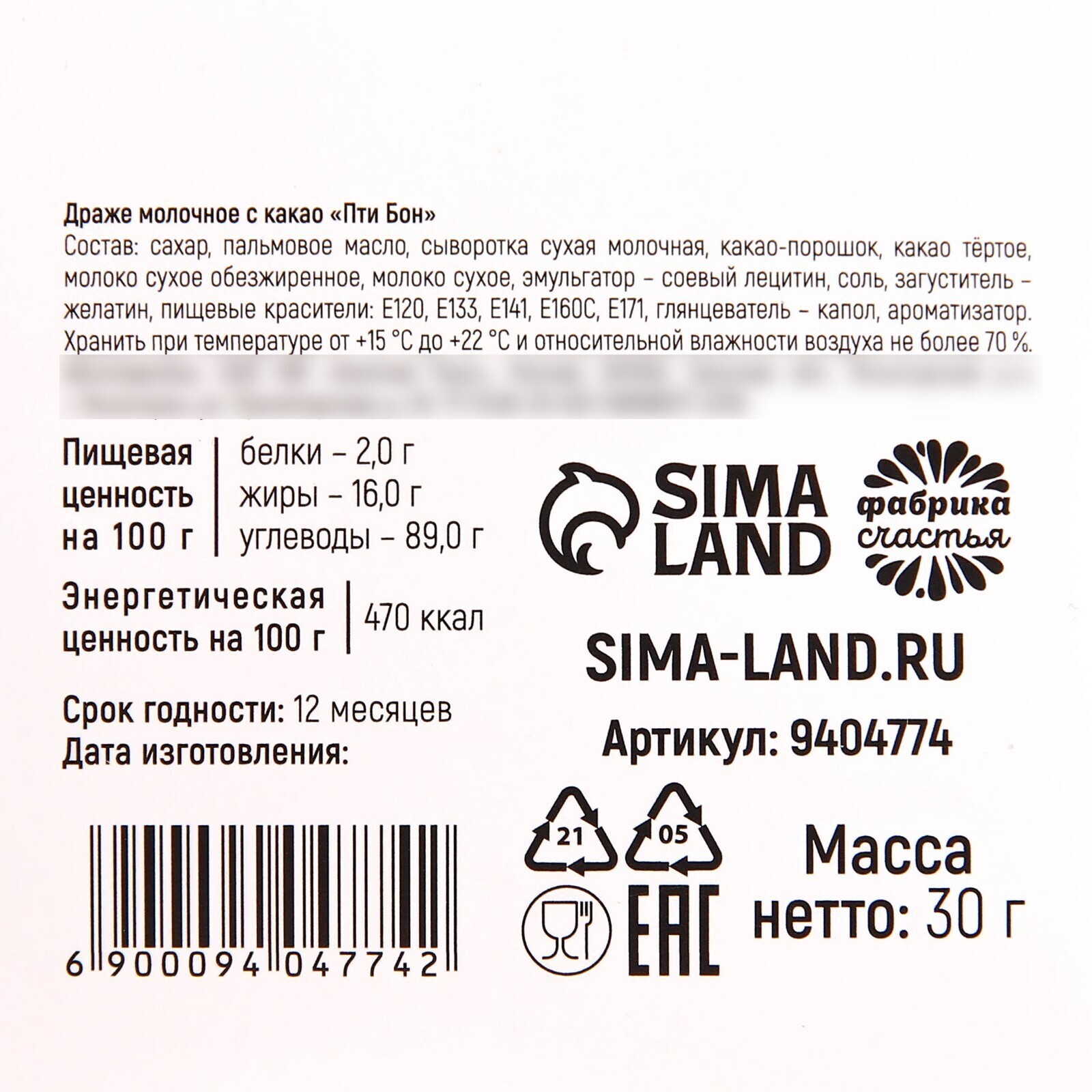 Состав: сахар, пальмовое масло, сыворотка сухая молочная, какао-порошок, какао тёртое, молоко сухое обезжиренное, молоко сухое, эмульгатор – соевый лецитин, соль, загуститель – желатин, пищевые красители: Е120, Е133, Е141, Е160С, Е171, глянцеватель – капол, ароматизатор.