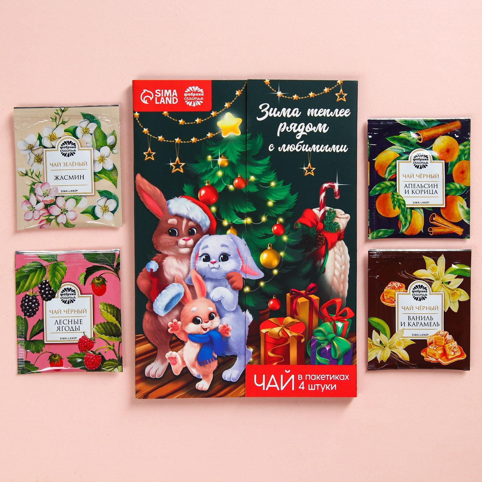 Чай в пакетиках «Зима теплее рядом с любимыми» в открытке, 4 шт. x 1,8 г.