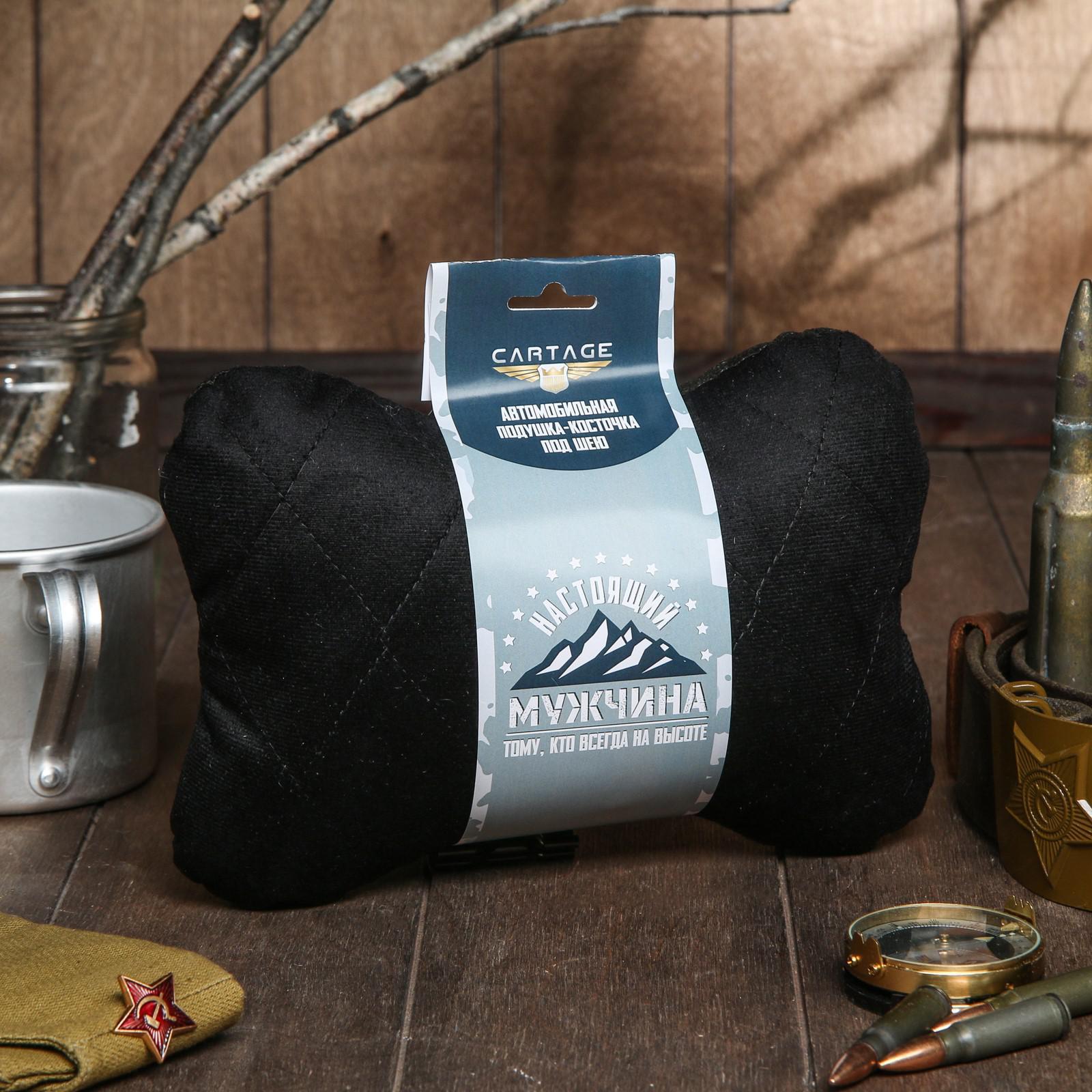 Подушка автомобильная подарочная "Настоящему мужчине", велюр, черный, 16 х 24 см