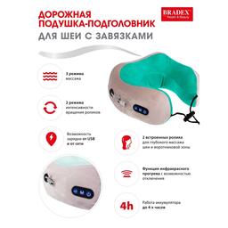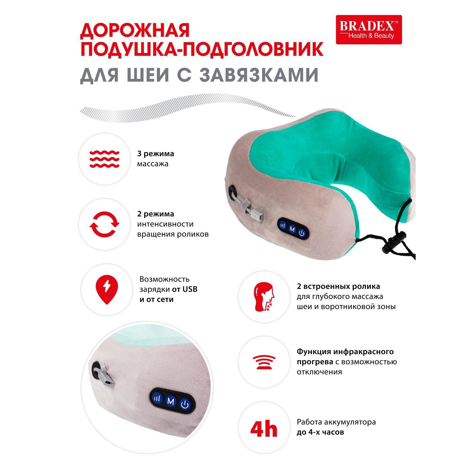 Дорожная подушка-подголовник для шеи с завязками Bradex KZ 0558, серо-зелёная