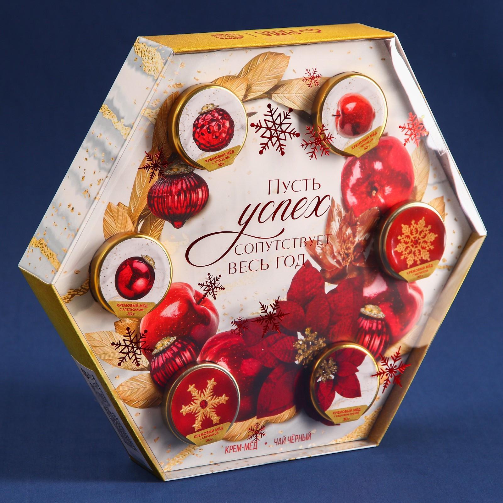 Подарочный набор «Новогодняя роскошь»: чай чёрный 50 г., крем-мёд 6 шт. x 30 г.