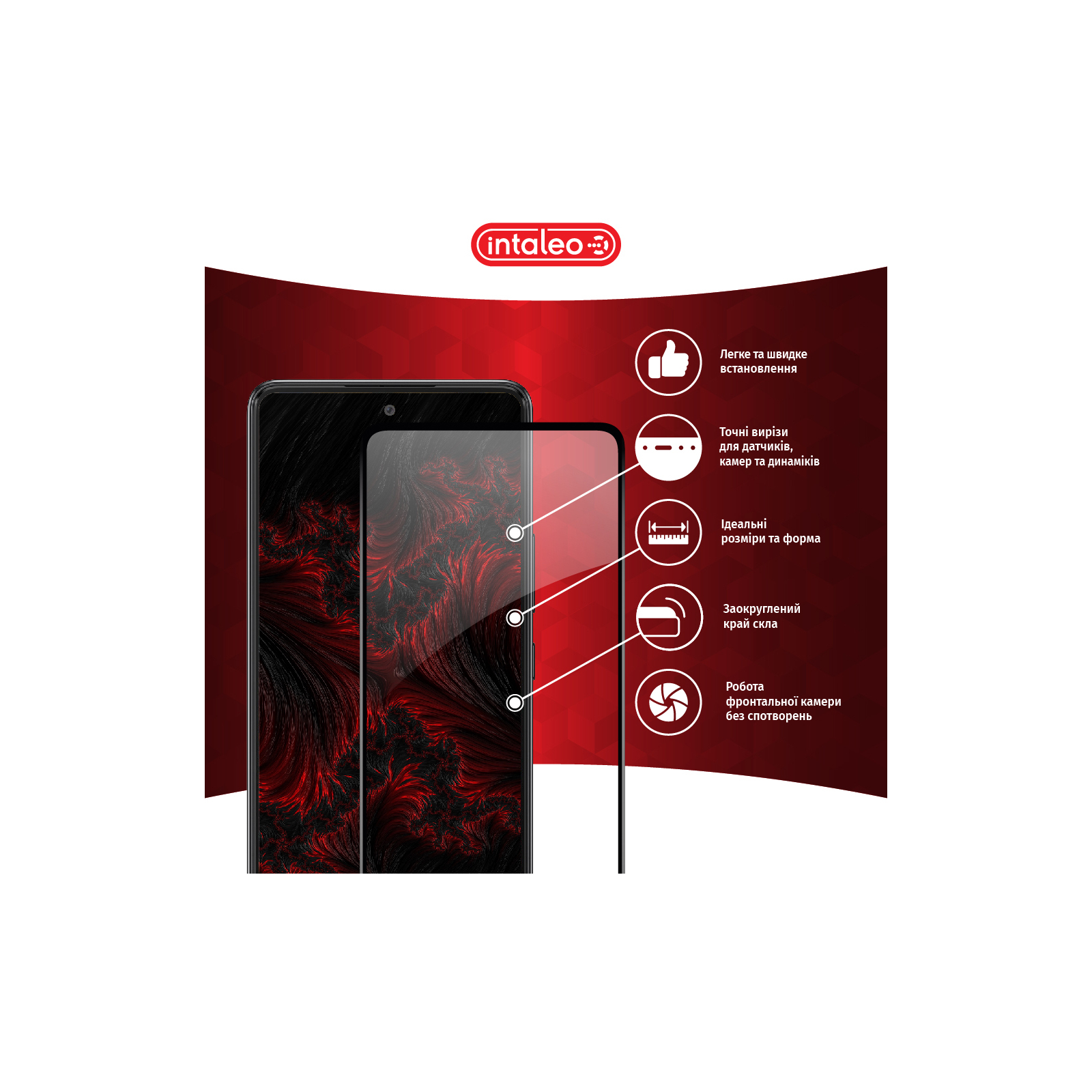 Колір і зовнішній вигляд непрозорих частин скла збігається з оригінальним зовнішнім виглядом передньої панелі мобільного пристрою.
