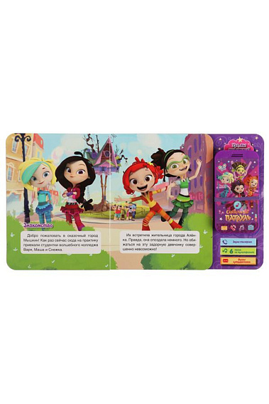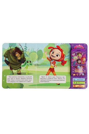 Любая девочка придёт в восторг от такой книги, дополнительно оснащённой музыкальным телефоном. Ребёнок будет с удовольствием читать яркую книгу вместе с родителями, погружаясь в невероятные приключения вместе с любимыми персонажам, а также нажимать на кнопки смартфона и слушать весёлые песенки и фразы героев.